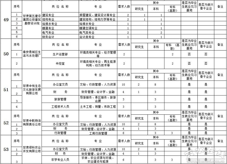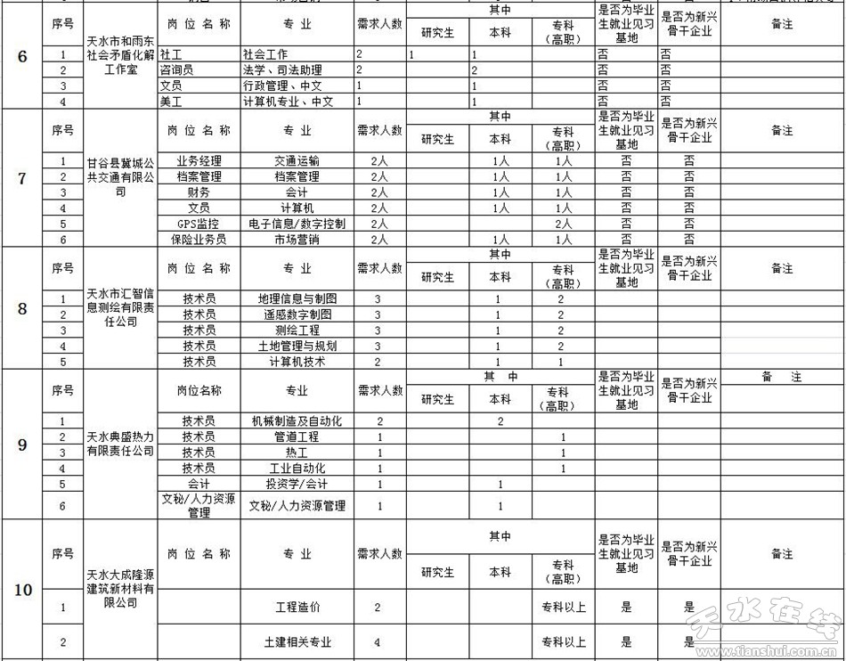附件:1. 天水市2016年服务企业岗位需求情况简表
