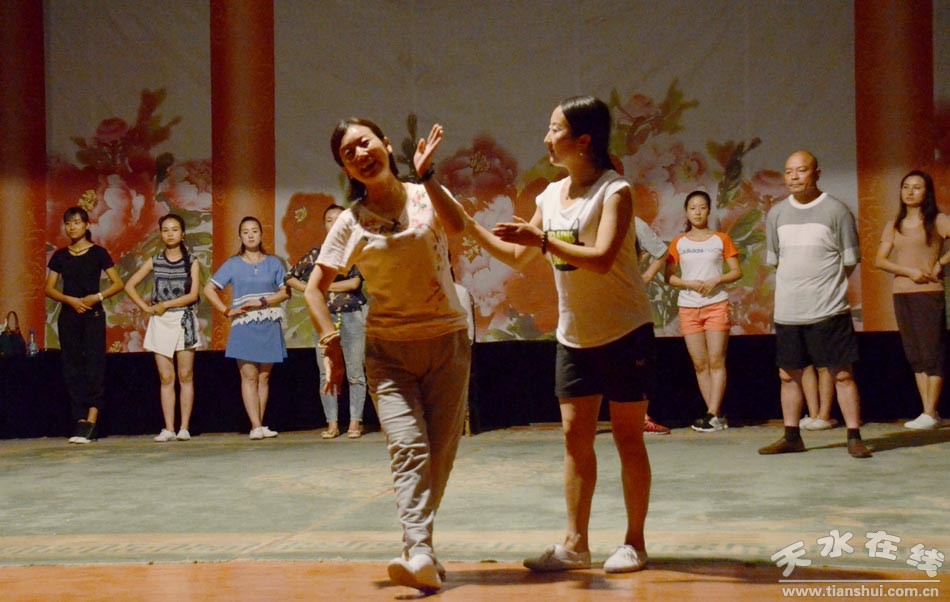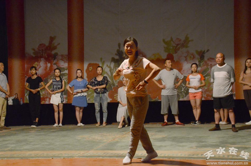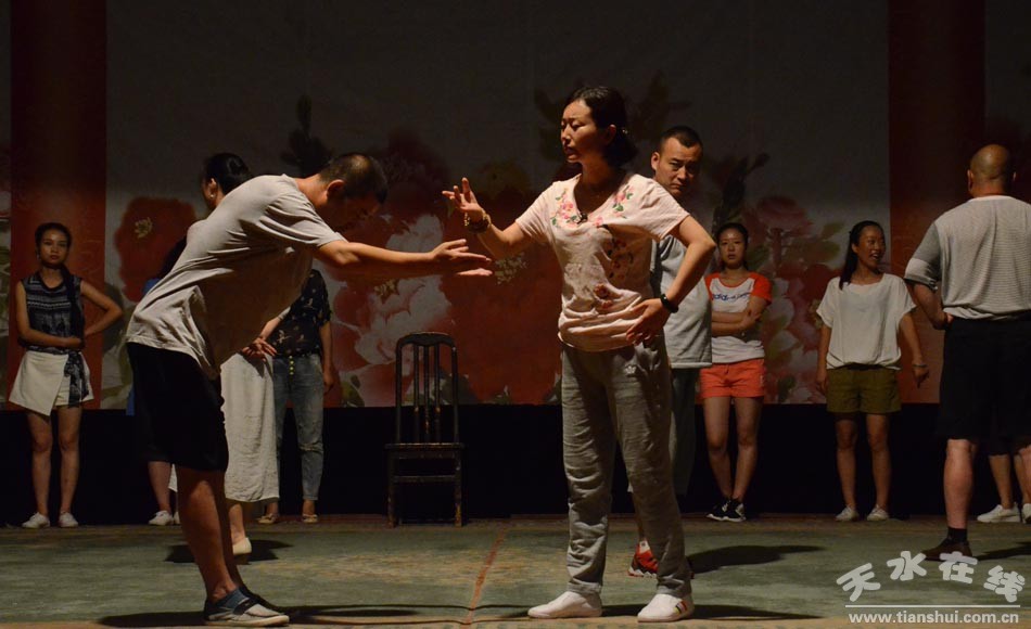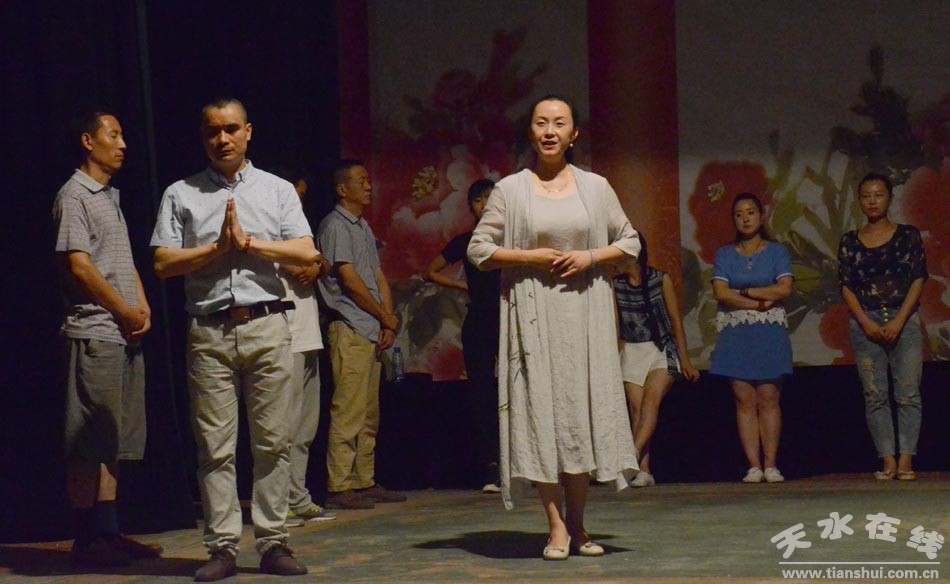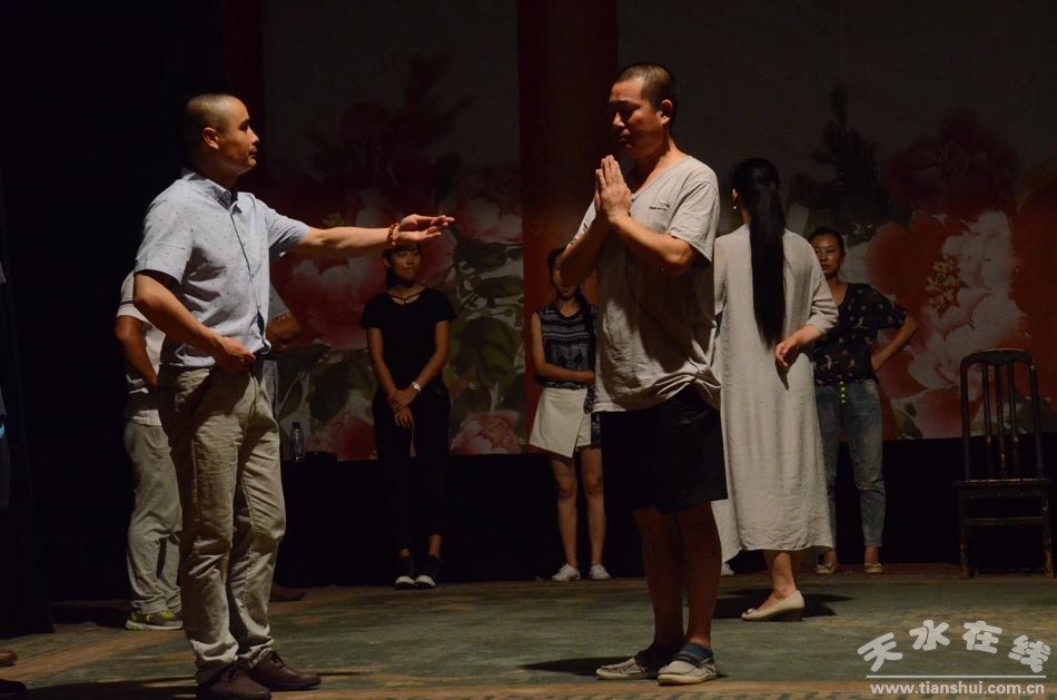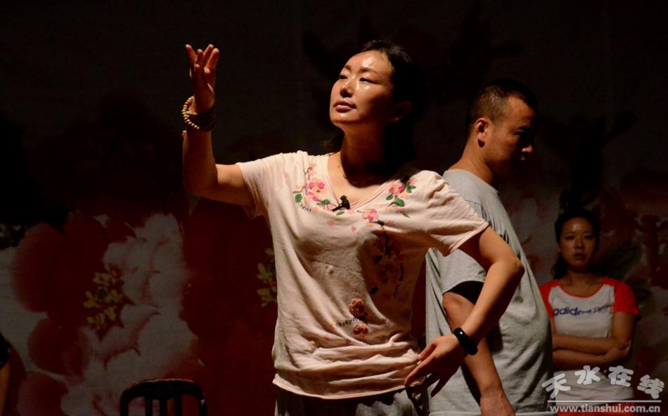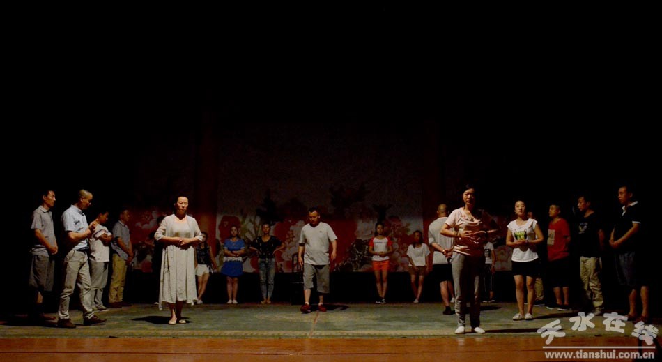 ▲天水市西秦腔研究院演职人员正在为《麦积圣歌》三进京城演出加紧排练