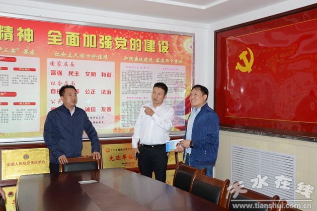 在了解到全省人防系统正在开展“向天水人防看齐、争当先进典型、创新人防发展”活动后,王海阔副教授提出,天水人防要继续总结在人防建设实践中的好经验、好做法,以第七次全国人民防空会议精神为引领,以“建设全国一流人防城市”为目标,以基于信息化条件下人防应急准备任务需求为牵引,以“两学一做”学习教育为契机,始终把国家安全和人民财产安全放在首位,切实强化政治意识、大局意识、国防意识、责任意识,继续谱写人防发展新篇章,奋力争创全国一流人防城市。