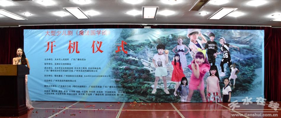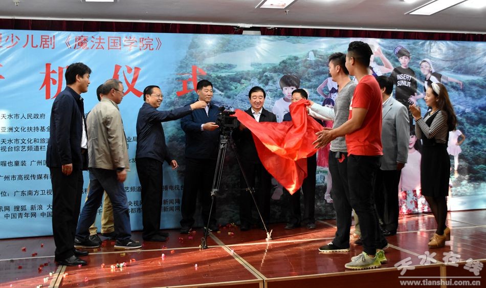 9月30日下午, 由天水市政府和广东广播电视台主办的大型少儿剧《魔法国学院》开机仪式在麦积区举行。这部少儿剧由广东广播电视台南方卫视综艺频道剧组拍摄,将在天水伏羲庙、麦积山及花牛苹果基地等地取景。天水市副市长霍卫平出席开机仪式。