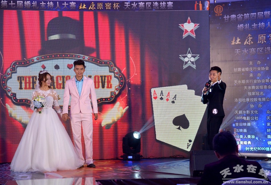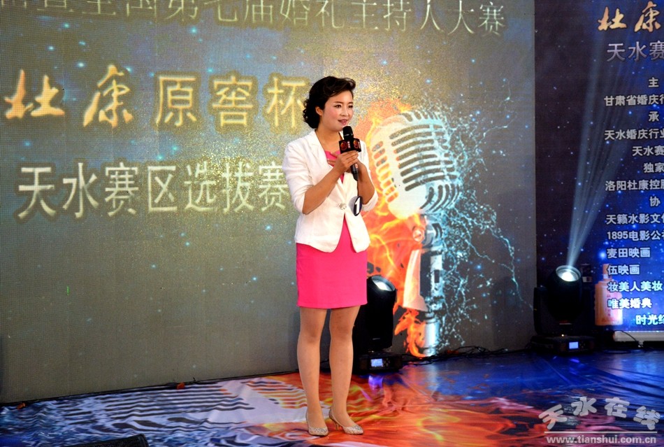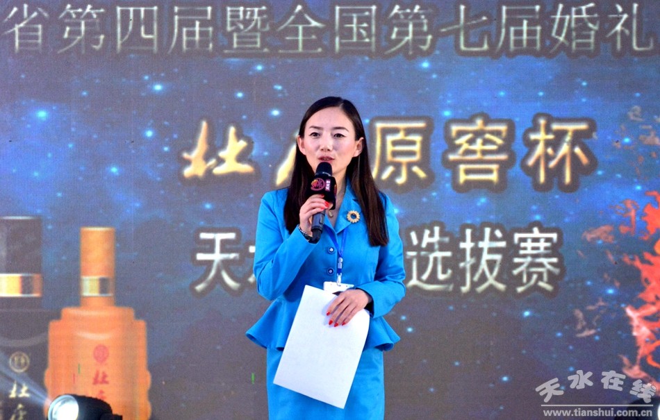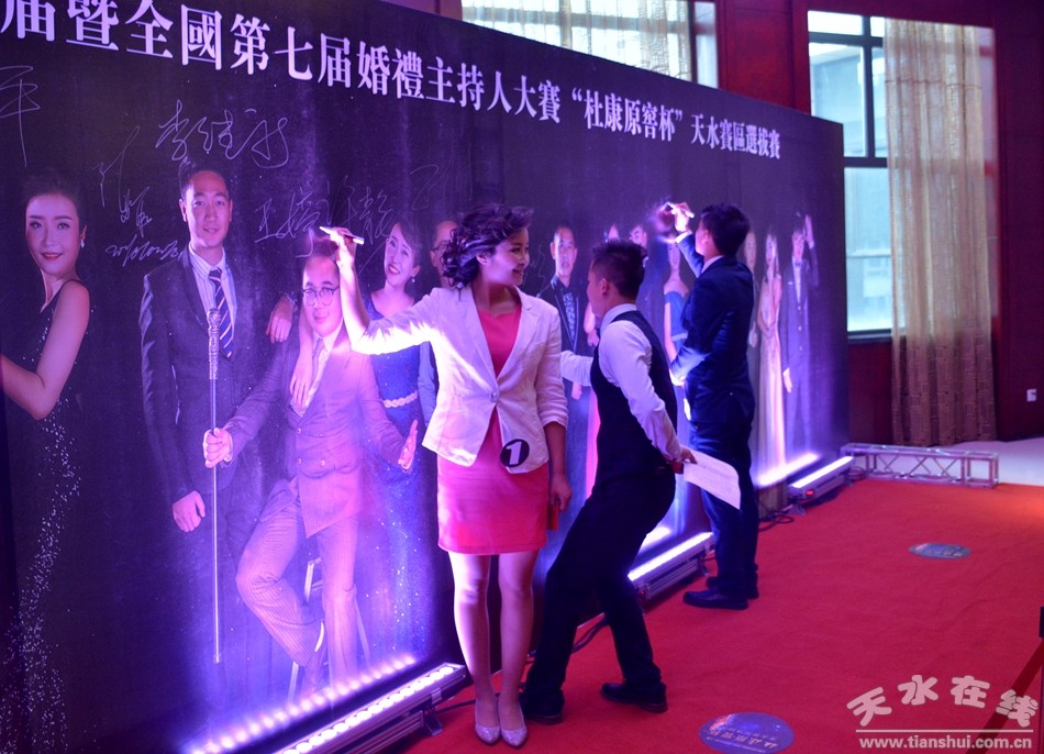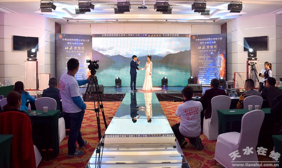 10月10日,甘肃省第四届暨全国第七届婚礼主持人大赛“杜康原窖杯”天水赛区选拔赛在麦积区地质宾馆举行。本次比赛由甘肃省婚庆行业协会主办,天水婚庆行业协会筹备组承办。来自全市各县区的15位参赛选手,经过激烈比拼,最终产生金、银、铜奖各3名。还通过现场评选以及网络投票选出了4个单项奖。