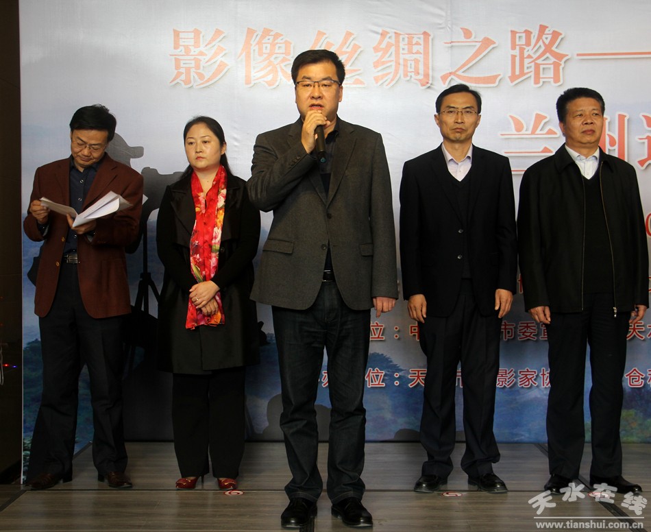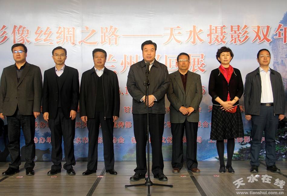 王正茂在致辞中表示,“影像丝绸之路——天水摄影双年展”从策划到兰州巡回展开幕已经历时一年之久,这次展览的举办是顺应国家丝绸之路经济带建设的大事、是顺应我省丝绸之路黄金段建设的大事、是顺应丝绸之路——敦煌国际博览会的需要,在社会各界的大力支持和广大工作者地 辛勤努力下如期展出,天水首战展出,接待国内外观众达15万人次,在(敦煌)国际文化博览会上的展览也受到国内外嘉宾的高度赞许。此次在兰州的巡展作品,不仅包含丝绸之路沿线国家、民族的作品,还有天水、陇南、嘉峪关等地方民俗文化的影子,希望有更多的人了解天水、了解甘肃、了解甘肃丝绸之路段;希望更多的人关注天水人文历史、关注天水文化产业发展、关注天水社会经济发展。