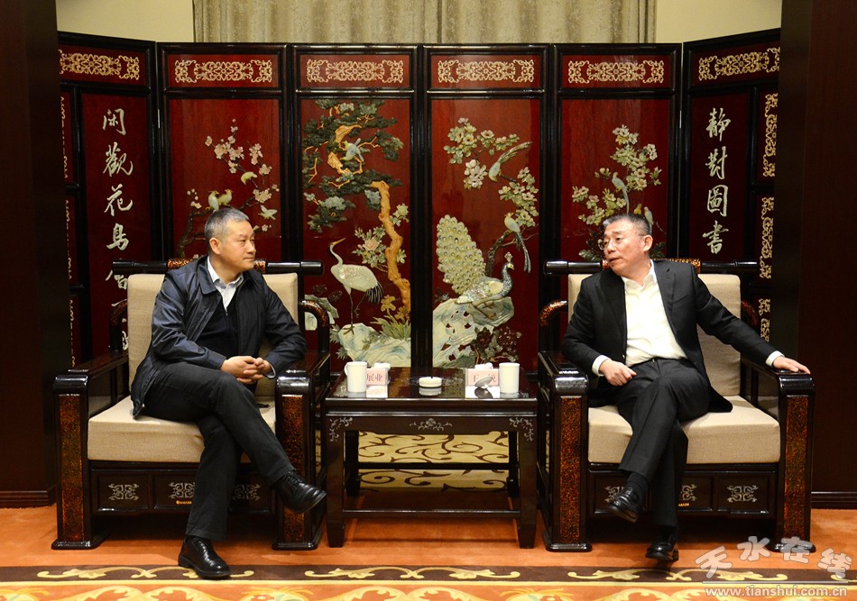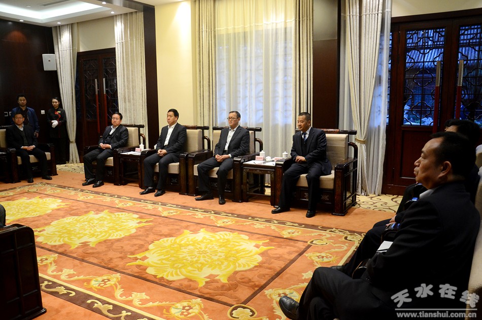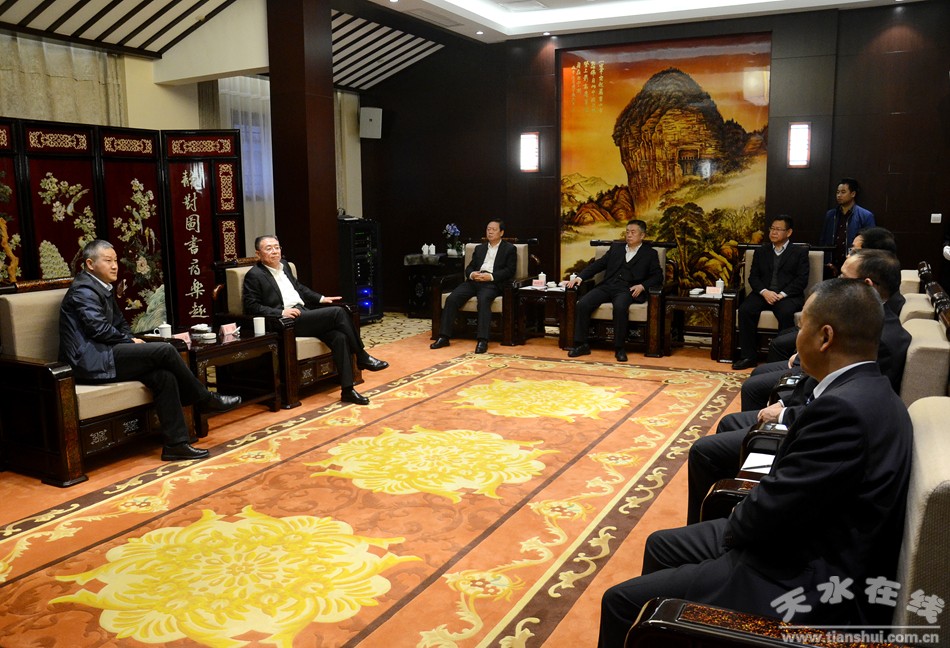 天水市委常委、市委秘书长蒋晓强,副市长张建杰,市政府秘书长逯克宗一同会见。 |