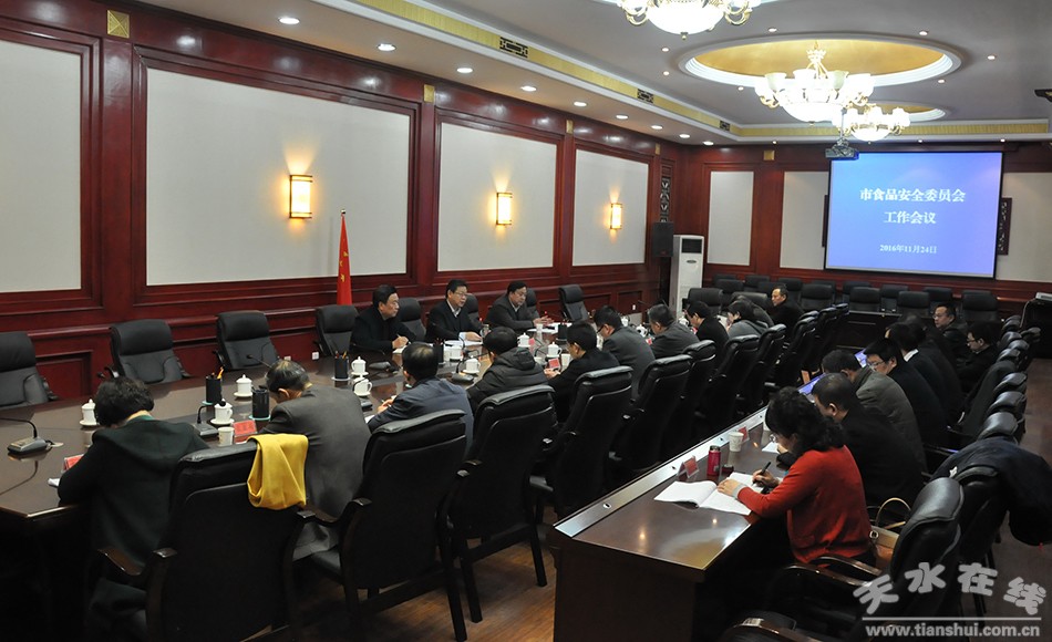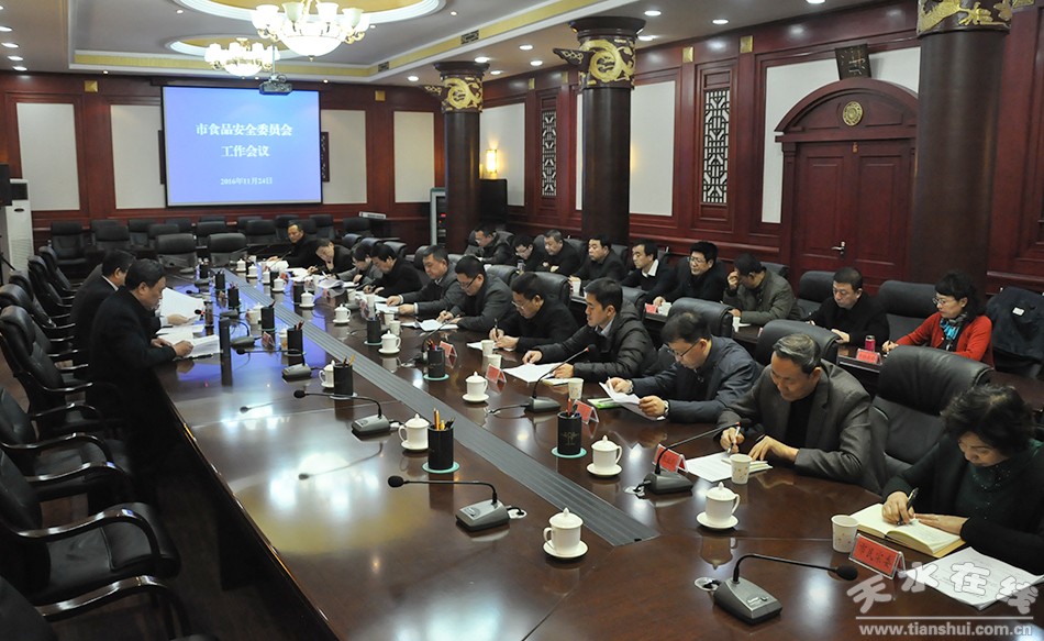 11月24日,天水市政府召开全市食安委工作会议,安排部署食品药品安全年终考核工作。副市长张建杰出席会议并讲话,市食安委会各成员单位负责人参加会议。