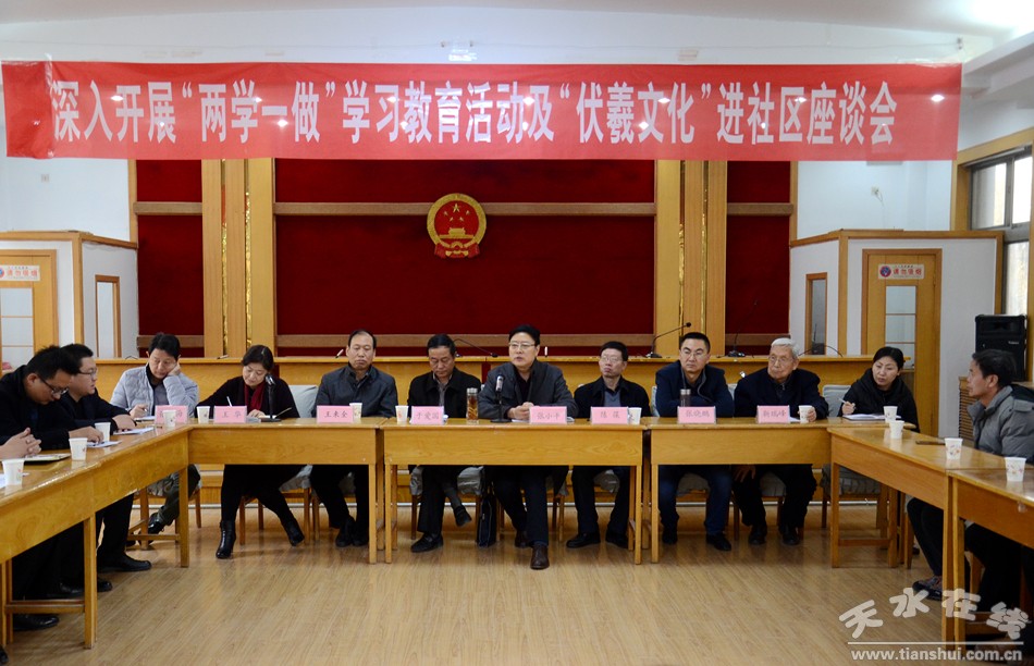 △召开“两学一做”学习教育活动及“伏羲文化”进社区座谈会 |