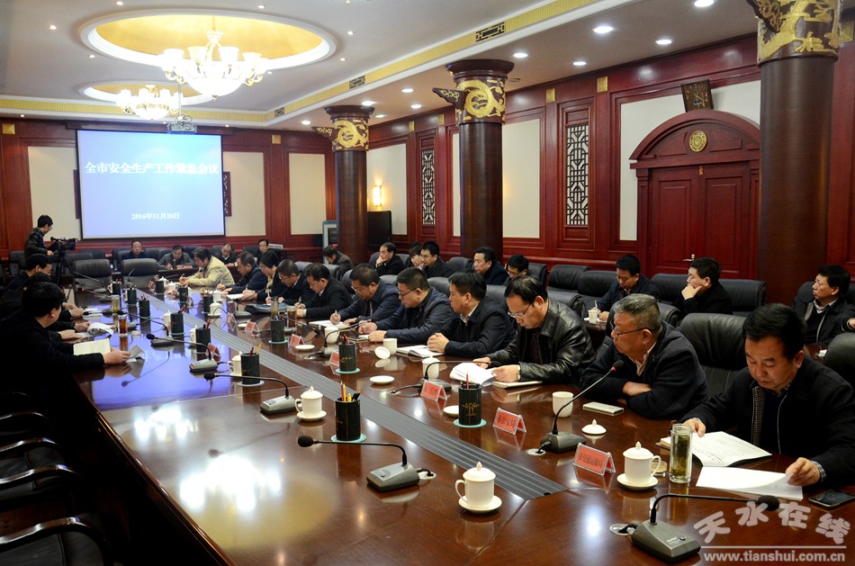 11月26日,天水市政府召开紧急会议,全面安排部署近期安全生产工作。市委常委、常务副市长赵卫东出席会议并强调,各县区、各有关部门要切实增强抓好安全生产工作的使命感和责任感,将安全生产工作作为当前压倒一切的重要任务来抓。市政府秘书长逯克宗,各县区政府分管领导、部分安委会成员单位主要负责人参加会议。