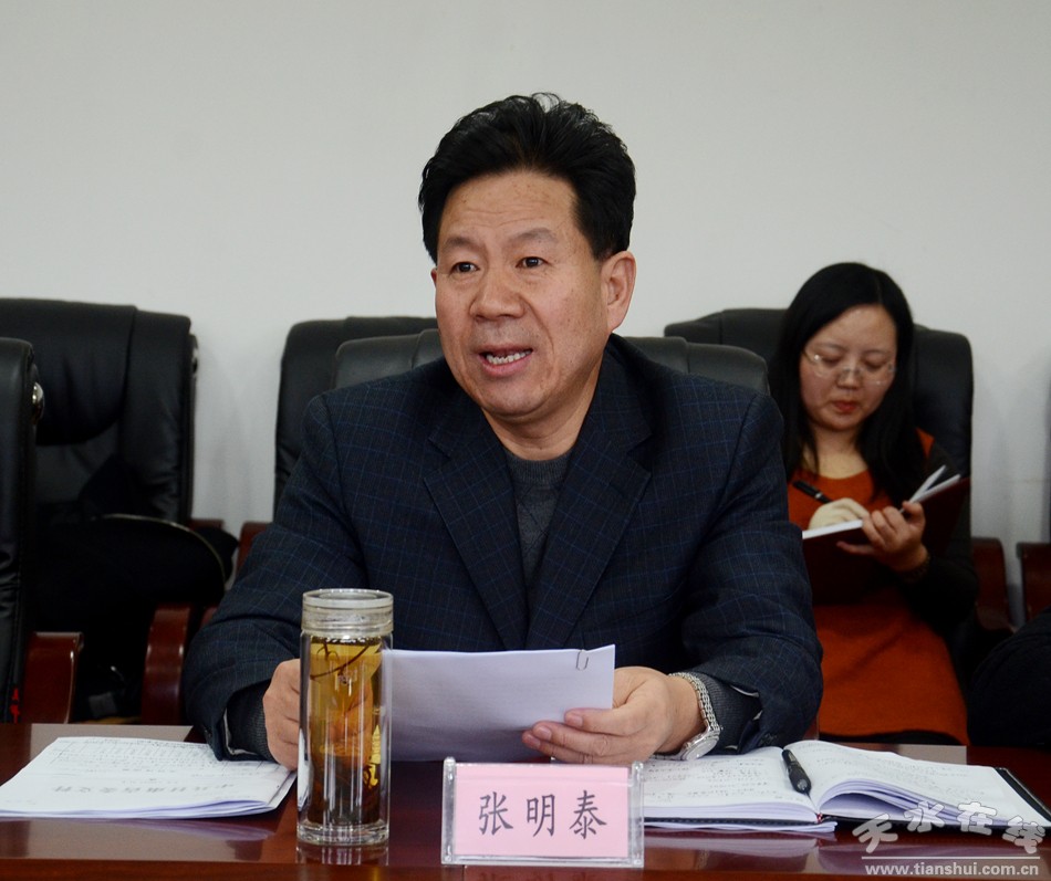 12月2日,天水市政协党组书记、主席张明泰主持召开市政协党组中心组学习(扩大)会议暨“两学一做”学习交流研讨会。市政协副主席马百龄、王振宇、刘永年、唐宏伟、屈光平,秘书长王小林参加会议。