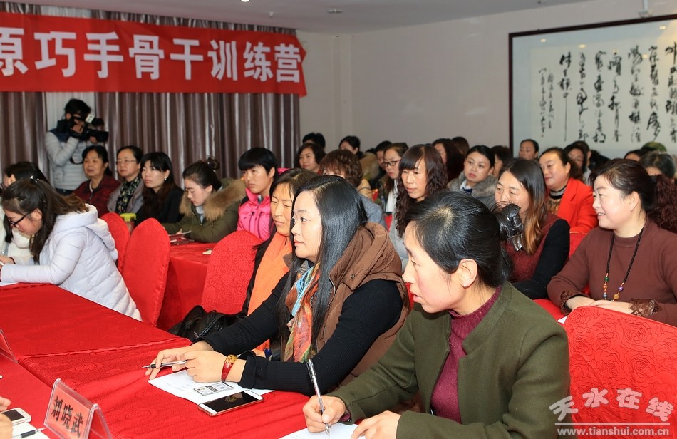 此次陇原巧手骨干训练营,是由天水市妇联主办,天水66号文化创意园承办,是市妇联为了积极响应“大众创业、万众创新”的号召,全力落实省市精准扶贫精准脱贫的部署要求,全面实施“陇原妹走出去,陇原巧手干起来”精准扶贫行动而举办,旨在进一步提高我市陇原巧手手工编织技能和手工产品营销能力,精准帮助更多贫困妇女“干起来”灵活就业、脱贫致富,充分发挥妇联组织在脱贫攻坚和“大众创业、万众创新”中的独特作用。培训班为期四天,共有来自我市两区五县的50名巧手骨干参加了培训。