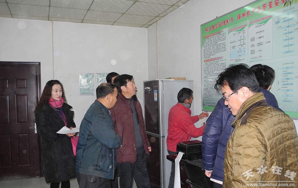 1月9日,督查组重点督查了清水县农业科技示范园区和天科公司,对其生产管理制度、投入品使用、生产记录等情况进行了检查并抽取了部分样品,在清水县家乐超市、西关蔬菜批发市场、秦州区蔬菜生产基地抽取了部分蔬菜样品,共计抽检10多类90个蔬菜样品,经检测,合格率为100%。 1月10日,督察组重点检查了秦州区昌盛食品有限公司,主要督查了其绿色食品证书年检情况和产品用标情况。
