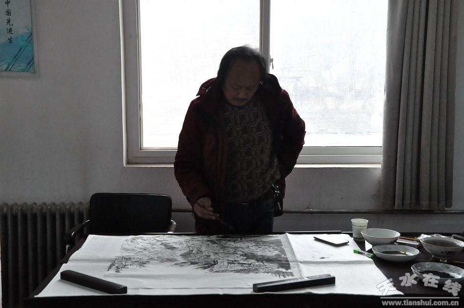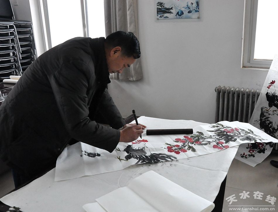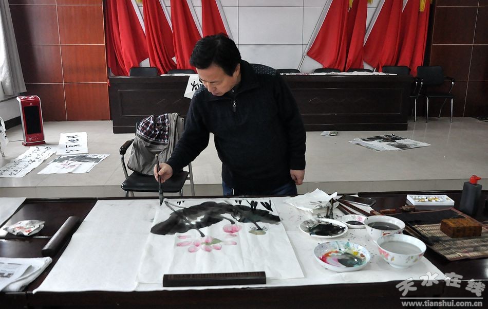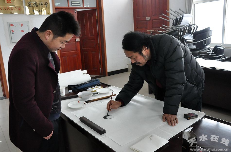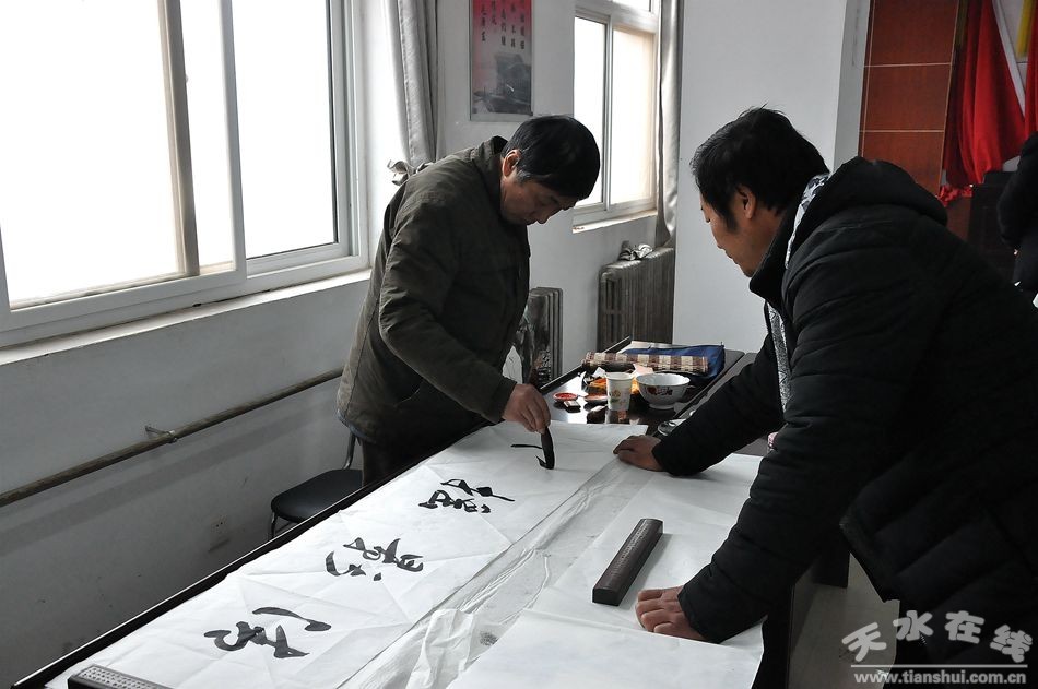 1月18日,在新春来临之际,天水市美术家协会主席贾利珠、副主席靳永红等8位市美协成员,走进秦州区秦岭乡开展“墨润秦岭”文化下乡活动。书画家们现场挥毫泼墨,创作了一百余幅精美的书画作品,为秦岭乡的乡亲们送去了一场载满新春祝福的书画盛宴。