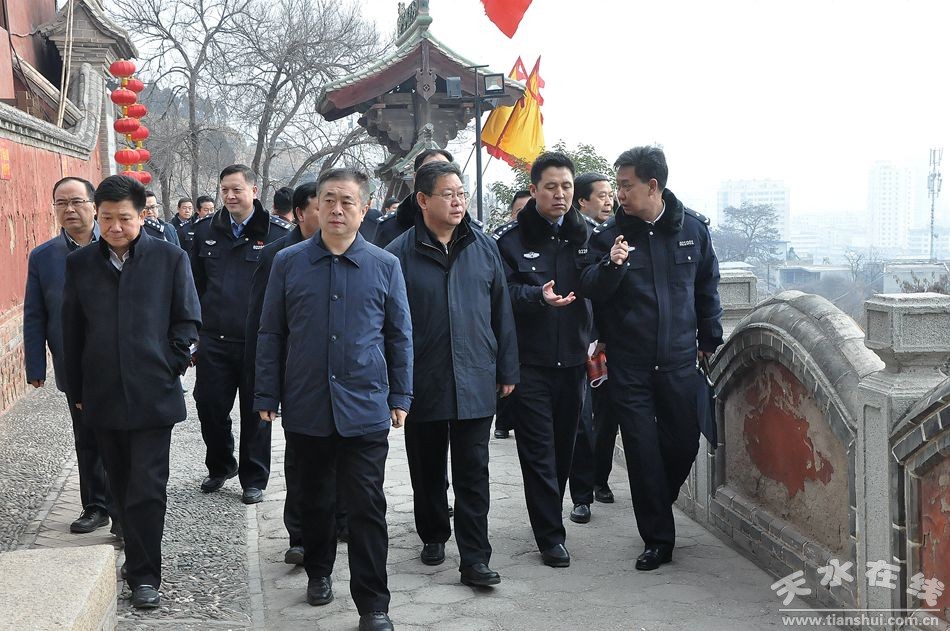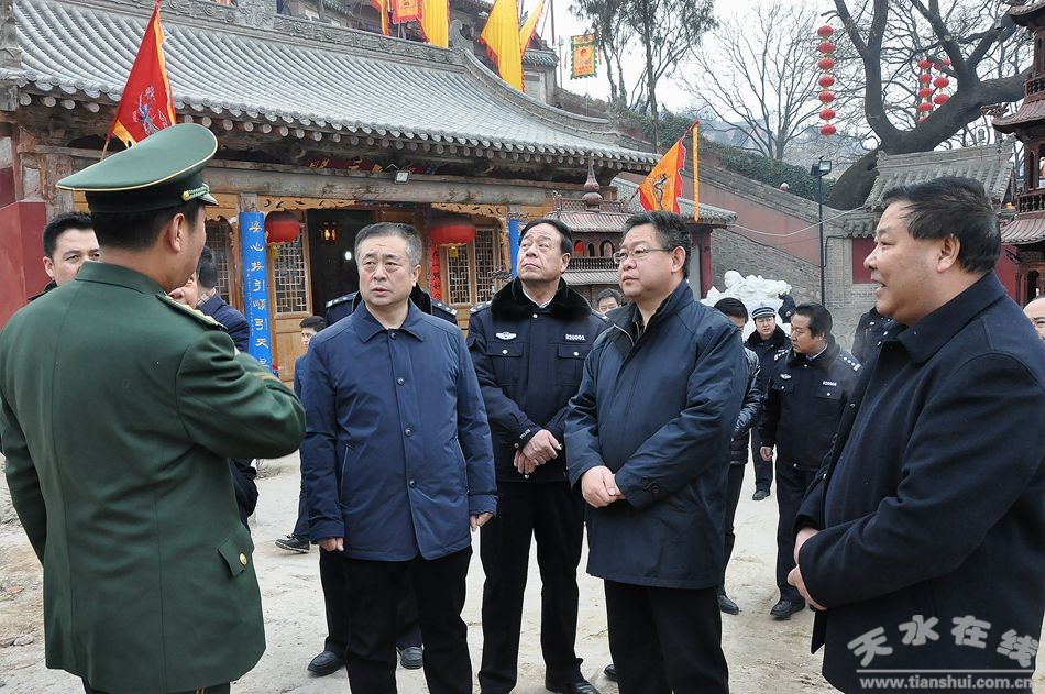 秦州区玉泉观“上九”庙会来临之际,2月4日上午,天水市委常委、秘书长、政法委书记蒋晓强,副市长张建杰带领市直及驻市有关单位、秦州区有关负责同志对玉泉观“上九”庙会准备工作进行了检查。