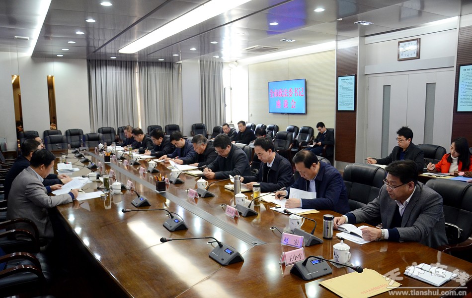 2月17日下午,天水市委常委、秘书长、政法委书记蒋晓强主持召开全市政法委书记座谈会。蒋晓强强调,要认真贯彻落实中央和省、市委政法工作会议精神,进一步把牢职能定位,提高履职能力,紧扣重点关键,落实主体责任,统筹推进政法各项工作落实到位。