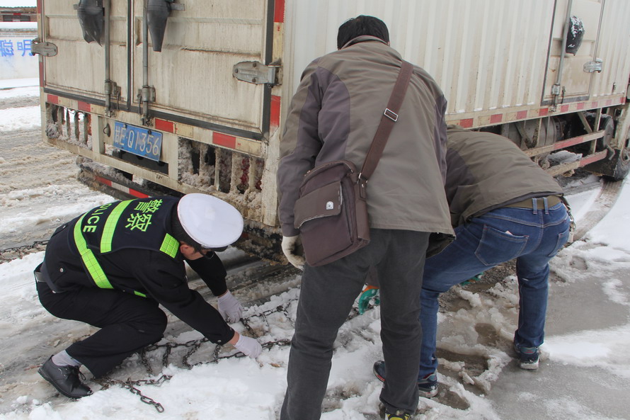(市公安局交警支队副支队长李静宏督导检查雪天道路交通安全管理工作)