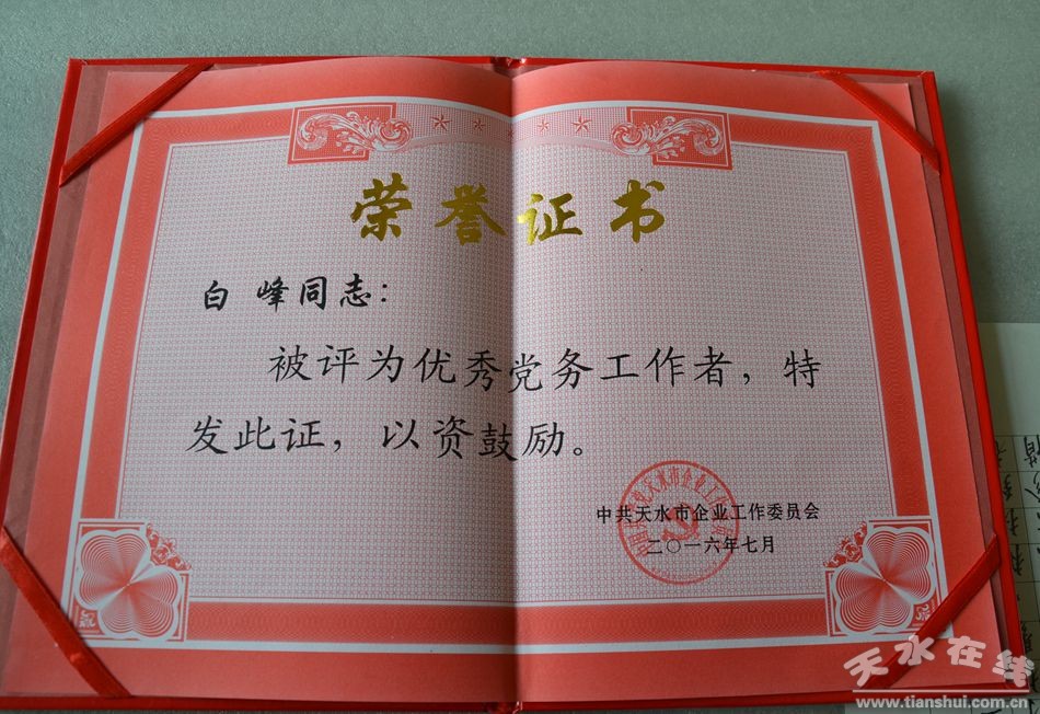 白峰,无论在天水焦化厂做党务工作,还是自2011年以来担任天水锻压机床集团党委办干事、团委书记、党委办主任兼宣传部长、党委委员、工会主席、纪委书记,他时时处处保持着一名共产党员的先进性和优秀品质。多年来,他默默无闻地付出,无怨无悔地坚守,“天水市企业工委优秀党务工作者”、“全省优秀工会工作者”等称号是对他最好的褒奖。