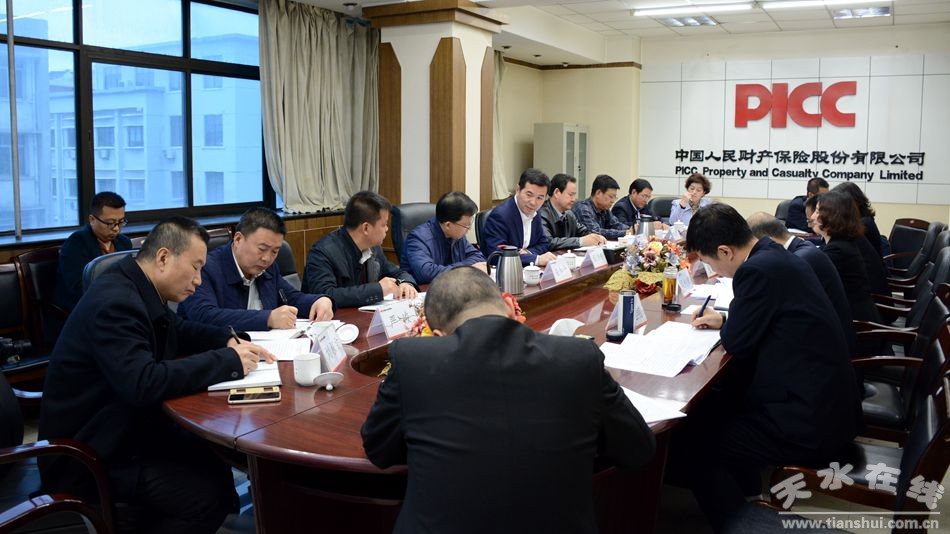 3月29日,天水市副市长程伟东带领调研组深入人保财险天水分公司调研,了解当前现代保险业发展现状,听取“政银保”模式方案和蔬菜价格指数保险模式方案汇报,研究解决如何创新保险产品和运营模式,助力精准扶贫,促进天水经济发展,深入探讨解决中小微企业、双创企业融资难、融资贵的难题。