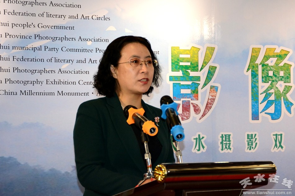 天水市副市长王燕在致辞中代表市委、市政府向莅临现场的各位领导、各位贵宾和新闻界的朋友们表示热烈的欢迎和衷心的感谢。她说,影像丝绸之路——天水摄影双年展(主题展)北京巡回展”既是摄影精品的展示盛会,也是国内外、各地区、各领域之间的文化交流平台,这必将进一步扩大天水知名度和影响力,提升天水文化品位,推动天水经济发展再上新台阶。希望大家通过影像,回味西部甘肃、古城天水深厚博大的历史文化底蕴,回首丝绸之路的灿烂辉煌,展望丝绸之路的美好明天。同时,也热忱欢迎各位嘉宾和摄影爱好者走进天水、聚焦天水、投资天水、发展天水。