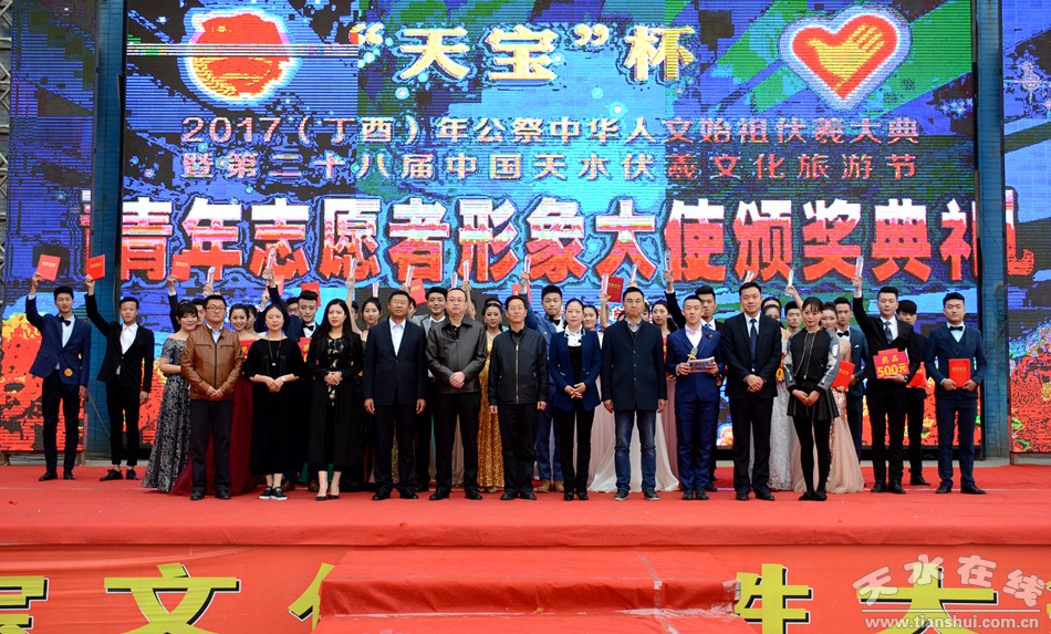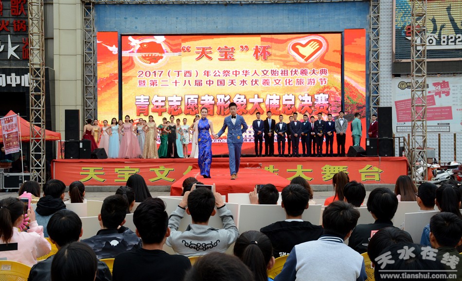4月8日,2017年公祭人文始祖伏羲大典暨第二十八届伏羲文化旅游节青年志愿者形象大使总决赛在秦州区天河广场举行,通过初赛和复赛精心选拔出来的37名选手经过激烈角逐,最终评选出10名青年志愿者为节会形象大使,6名选手分别获得最佳口才奖、最佳才艺奖、最佳智慧奖、最佳礼仪奖、最佳风尚奖、最佳气质奖。之后,我市还将选出360名节会青年志愿者,参与2017年节会的接站、引导、联络和服务工作。