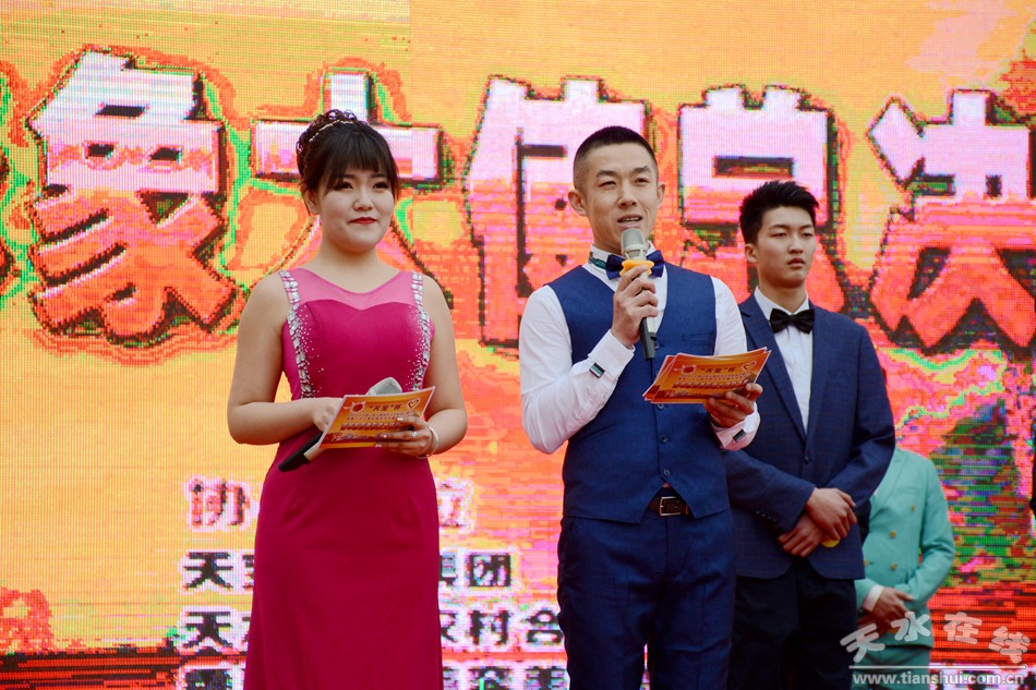 (天水市节会办副主任张晓鹏为荣获最佳口才、才艺、智慧奖选手颁奖)