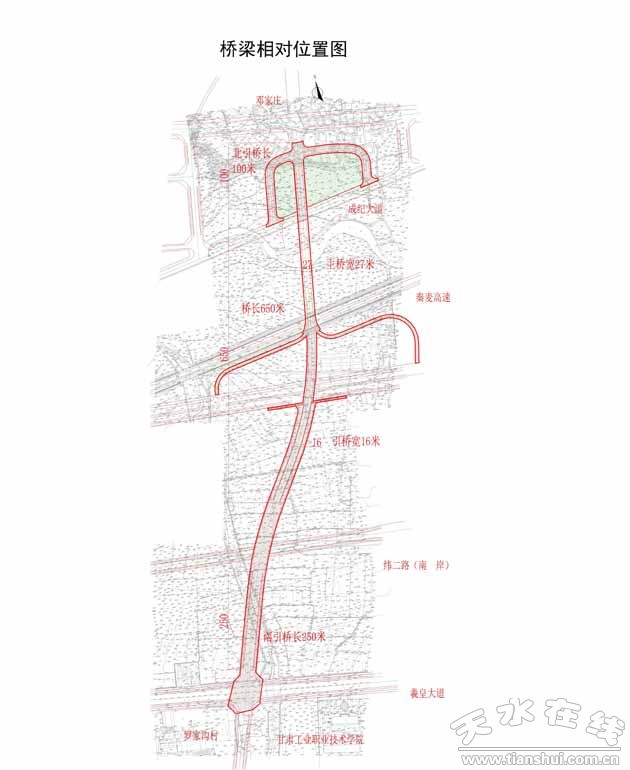 为了规范桥梁名称,提升城市品位,根据天水市城市总体规划,按照市政府安排,由天水市城市建设投资(集团)有限公司建设跨藉河罗家沟大桥(原工程名称)该桥北起邓家庄,跨越成纪大道、藉河、秦麦高速,向南与羲皇大道相连,其中桥长650米,宽27米,北引桥长100米,南引桥长250米,引桥宽16米。为了更好地彰显天水文化底蕴和城市特色,特向社会公开征集该座桥梁名称,