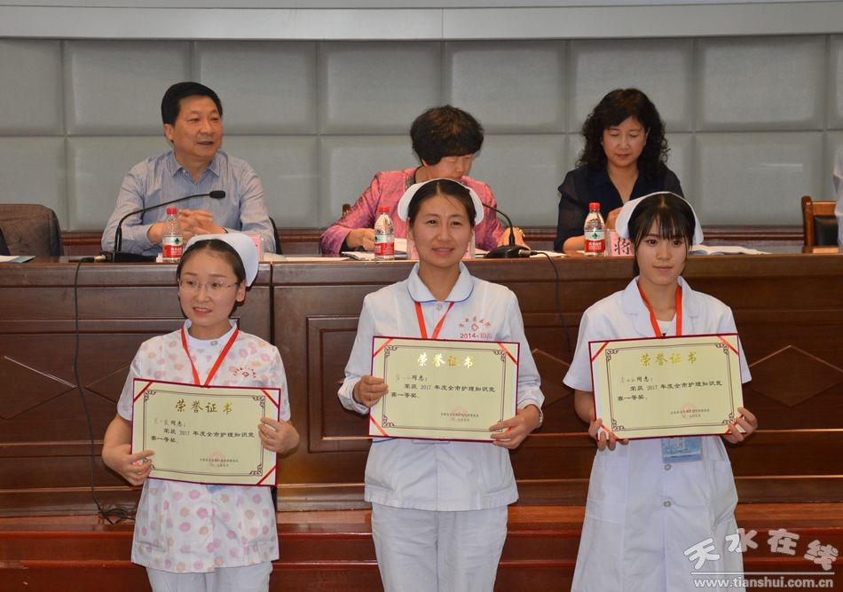 会上,对市第一人民医院王娟红等38名护士授予“市卫生计生系统优秀护士”荣誉称号,对武山县人民医院王彩霞等25名护士授予“市卫生计生系统优秀护理管理者”荣誉称号,对张家川龙山中心卫生院内科等16个护理单元授予“市卫生计生系统先进护理单元”荣誉称号,并颁发奖牌,予以表彰。对吴兰霞等18名2017年全市护理知识竞赛获奖者、高桂珠等6名优秀指导教师和市第一人民医院等6个获奖团体进行了表彰。