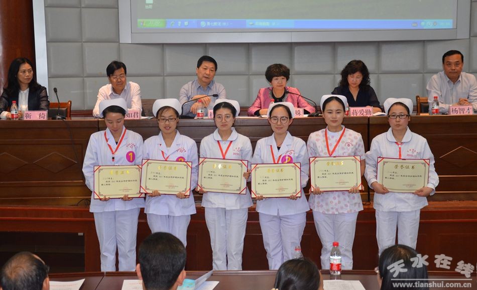 (向天水市卫生学校颁发全市护理知识竞赛优秀组织奖)