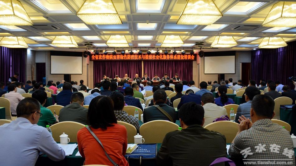 5月16至17日,全省农作物病虫绿色防控技术与植保社会化服务体系建设培训会议在天水市麦积区召开。会议主要总结近年来全省在农作物病虫绿色防控技术与植保方面工作成效,交流先进经验,部署当前重点工作,研讨今后工作发展思路。省农牧厅党组成员、副厅长杨祁峰出席会议并讲话,天水市政府副市长程伟东致辞,省农牧厅种植业管理处和省植保植检站,各市州农业局、植保植检站负责人,部分专业化服务组织和企业联盟代表共计150多人参加会议。