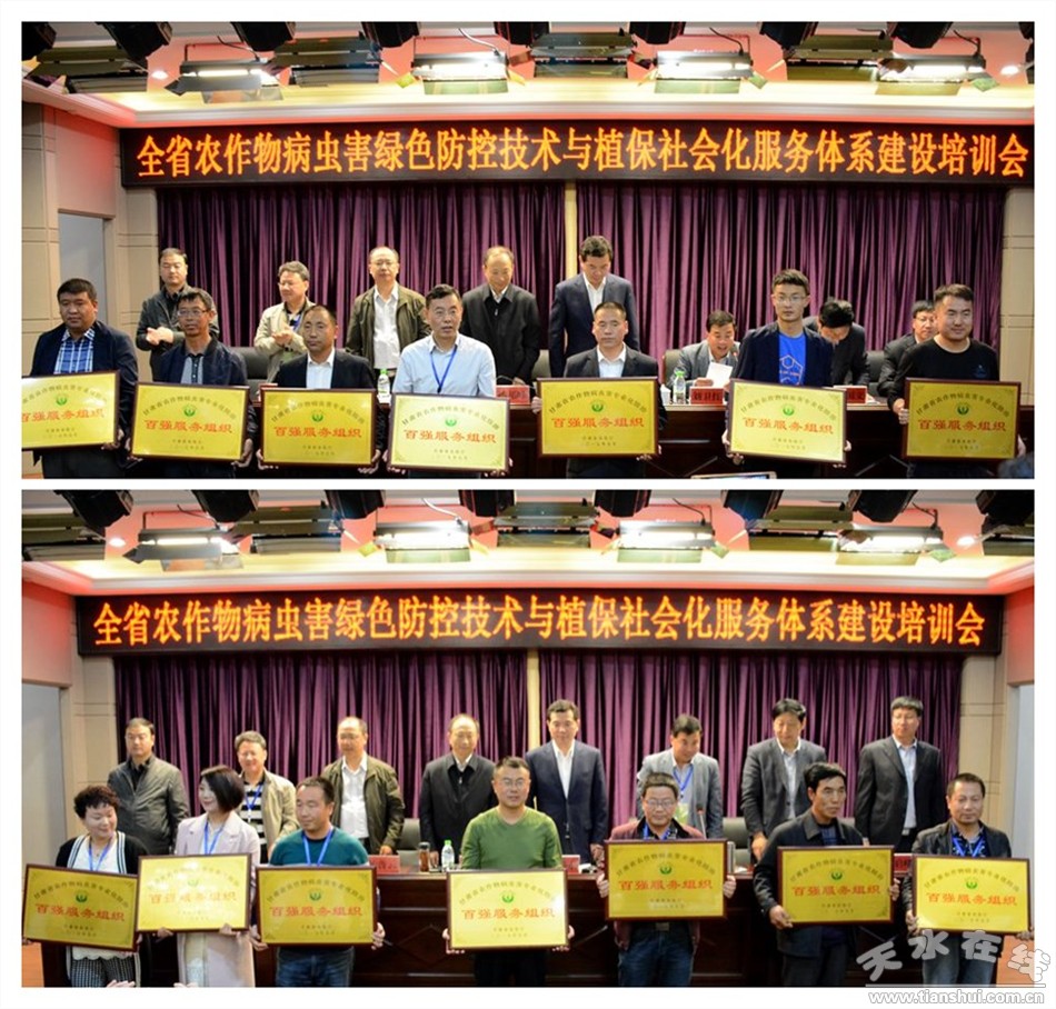 会上,宣布成立了甘肃省植保社会化服务联盟、“甘肃省农作物病虫害专业化防治百强服务组织”名单并授牌;全国农技中心防治处处长杨普云和中国农业大学何雄奎教授分别以《农作物病虫害绿色防控技术进展与展望》和《新型植保器械与高效施药技术》为主题,对参会人员进行了培训;天水市植保植检站、玉门市植保植检站及部分植保服务组织和联盟企业代表作了交流发言;大会还组织与会人员深入到麦积区禾盛种植农民专业合作社蔬菜基地、天水洁通农业科技公司九龙山花牛苹果基地、天水国家农业高新科技园区等地现场观摩了农作物病虫绿色防控和专业化防治及联盟企业新产品及配套技术展示。