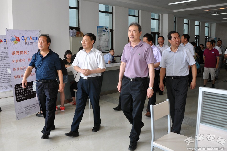 天水市政协副主席郭明兴、中国北方人才市场执行副总裁尹愷、南昌市高新区人社局副局长余崇发等一行领导莅临现场参观指导。