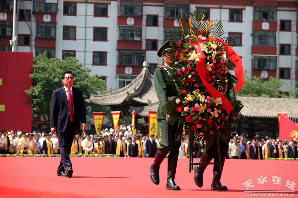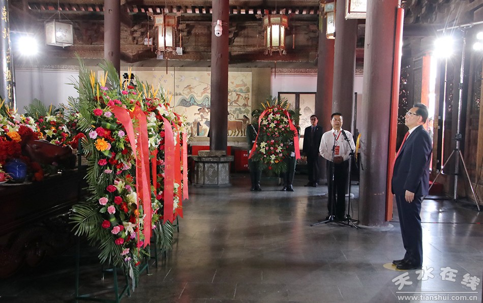 6月22日上午,2017(丁酉)年公祭伏羲大典在天水伏羲庙举行。甘肃省政协主席冯健身走进伏羲庙,敬献花篮、瞻仰伏羲圣像。