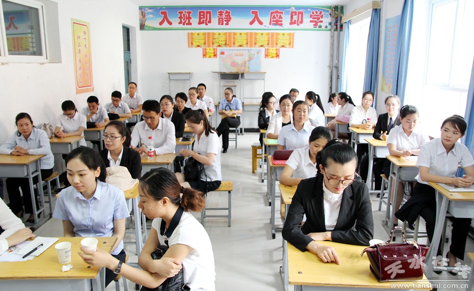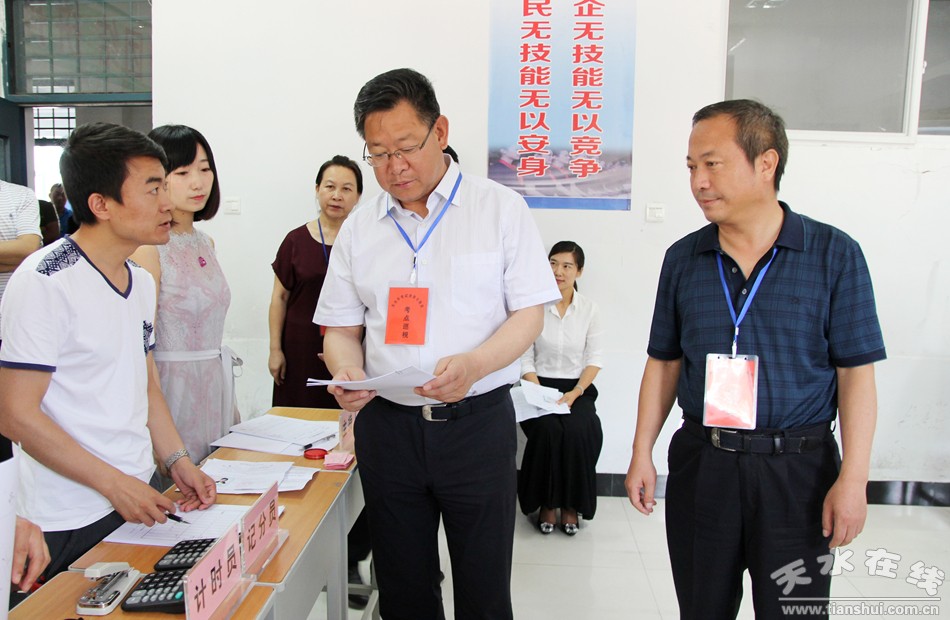 6月23日,天水市2017年从优秀村干部中考试录用乡村机关公务员面试工作在市技工学校举行。市委常委、组织部长王正茂巡视考场。