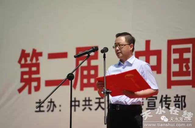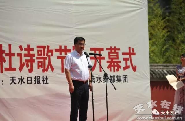 (读者出版集团总经理、读者传媒股份有限公司副董事长、总经理、总编辑陈泽奎宣布,第二届中国天水李杜诗歌节开幕)