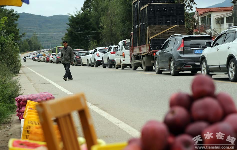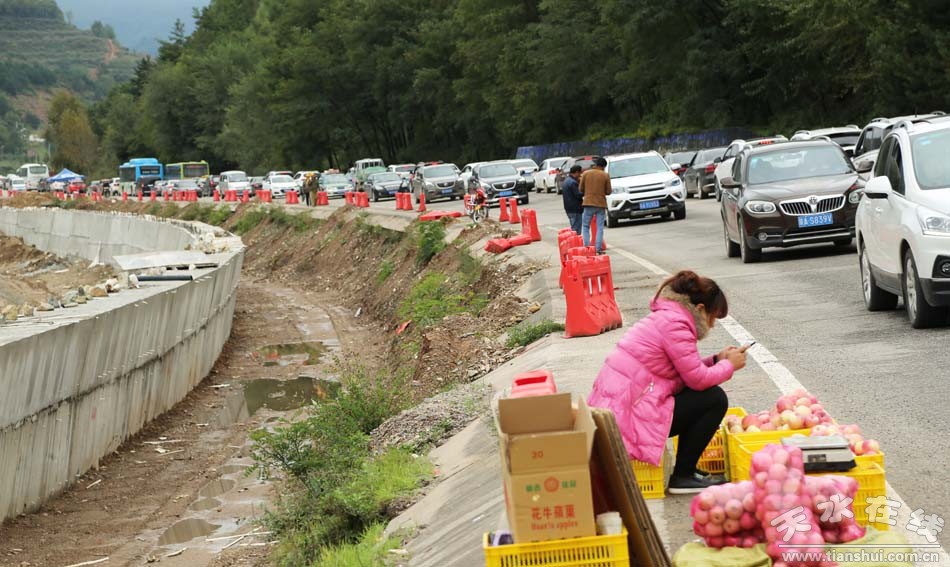(麦贾公路上,前往麦积山的旅游车辆。天水在线摄于10月4日)