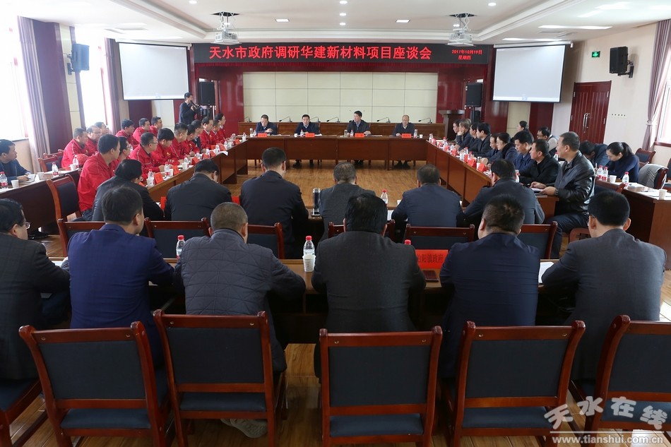 10月19日,天水市委副书记、市长王军带领市政府督查室、工信委、国土、环保、交运、建设、水务、林业、规划、开发区管委会、麦积区政府负责人,到天水华建新材料有限公司调研生产经营情况。市政府秘书长王祥林一同调研。