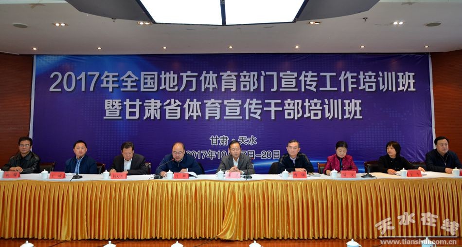 10月18日,全国地方体育部门宣传工作培训班暨甘肃体育宣传干部培训班在天水开班。甘肃省体育局局长杨卫,国家体育总局宣传司副司长曹康,国家体育总局人力资源中心副主任王军,甘肃省体育局副局长钱万杰,天水市委常委、副市长宫辉等出席开班仪式。
