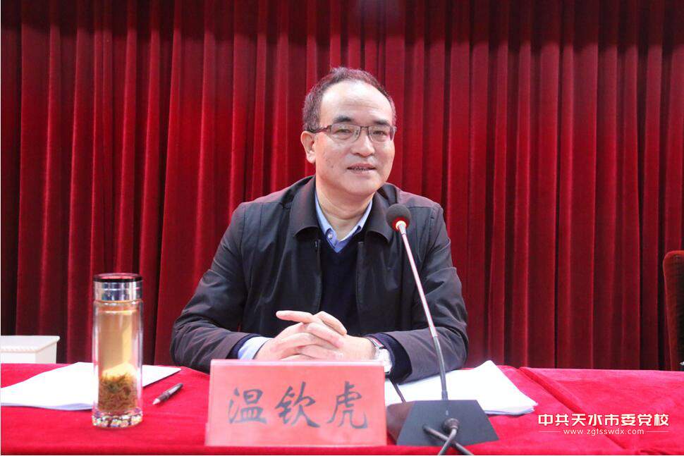 温钦虎指出,召开学习宣传贯彻党的十九大精神教学工作会议,目的在于让教育者先受教育,培训者先受培训,让教研人员在学习宣传贯彻十九大精神方面走在前列。教研人员要深入学习、深刻领会新时代中国特色社会主义思想博大精深的丰富内容和深刻内涵并结合自己的专业背景,从不同角度、方向和领域认真解读十九大精神。教务处、各教研室要迅速组织教研人员就党的十九大精神进行集体备课,开设专题,并列入本学期主体班次教学计划中,充分做好党的十九大精神进课堂、进教材、进头脑工作;宣讲团成员要认真做好党的十九大精神进机关、进社区、进农村的各项准备工作;科研处要组织科研力量开发科研课题,并及时捕捉省市关于党的十九大精神研究的课题项目,抓好新时代中国特色社会主义思想研究工作;《天水行政学院学报》《天水学刊》要尽快设立新时代中国特色社会主义思想研究专栏,刊登新时代中国特色社会主义思想研究的新成果。