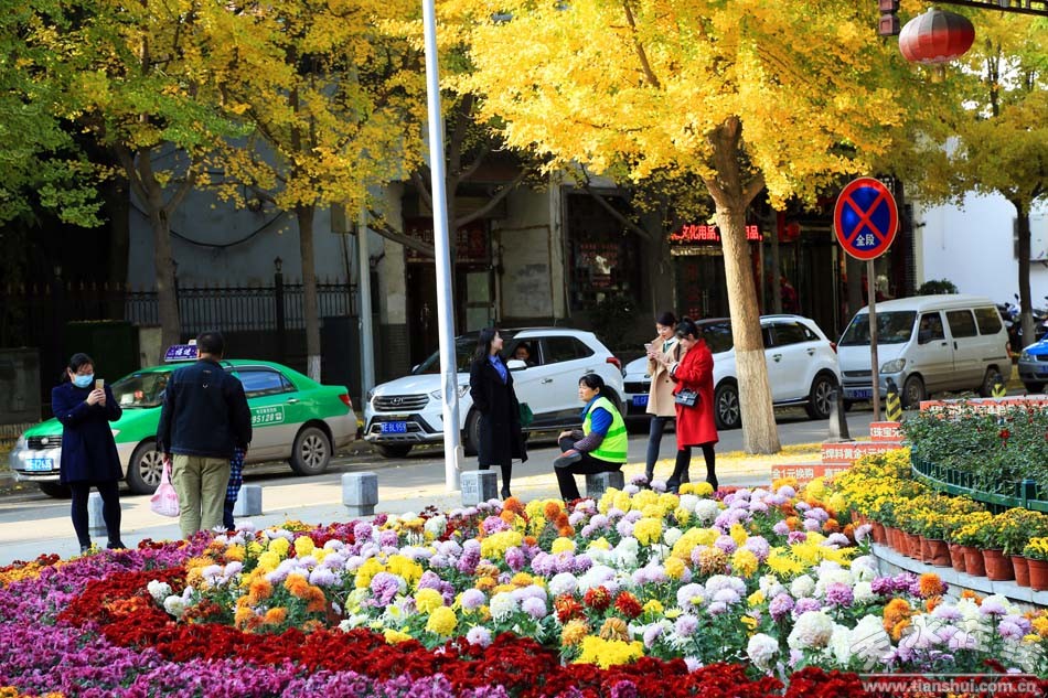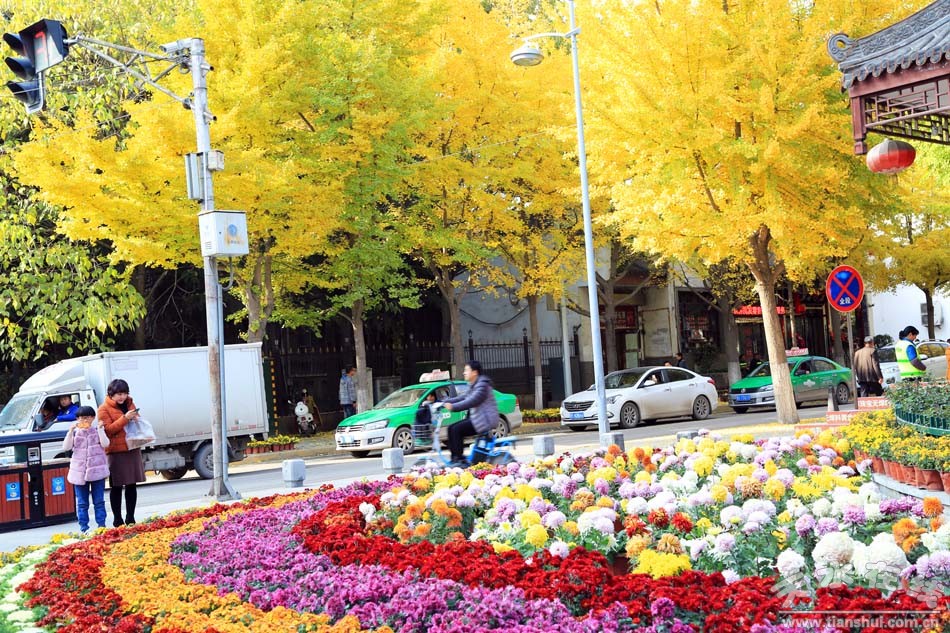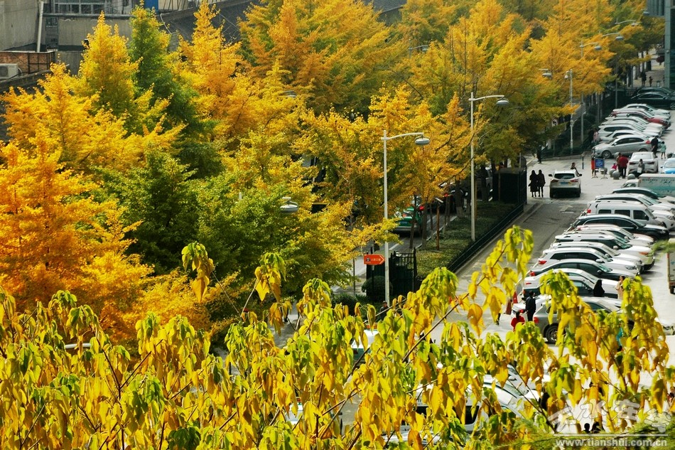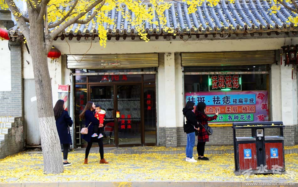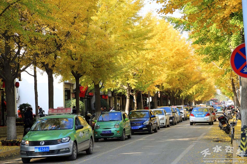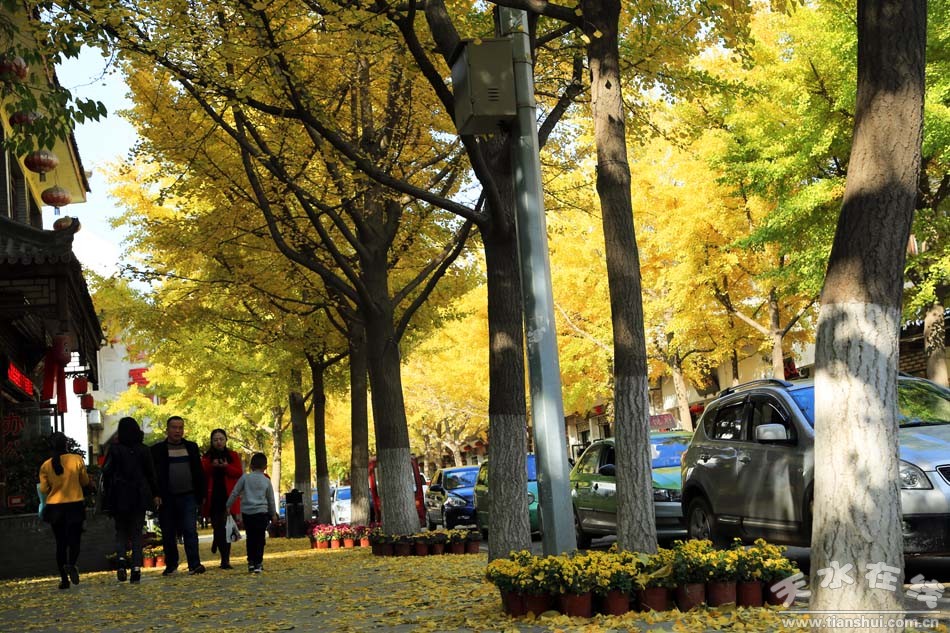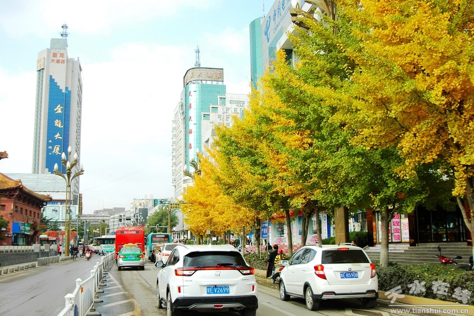 天水在线11月5日报道 深秋时节,天水市秦州区青年南北路的银杏叶子已经全部金黄,进入一年中最美的时节。11月5日的青年南北路,落叶遍地,景美如画。时值周日,市民纷纷来到这里,或驻足欣赏,或嬉戏玩乐,或摄影,或摄像,或自拍,真是美了美了,醉了醉了。