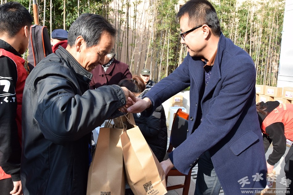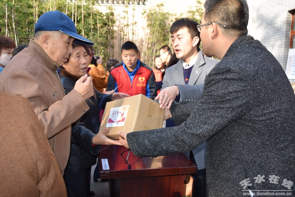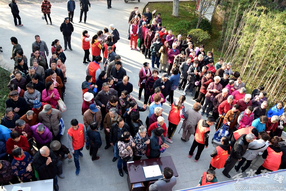 据了解,此次爱心活动由天水市民政局、天水市虚拟养老院主办,甘肃永强建设集团、甘肃德丰农业有限公司、甘肃商帮电子商务有限公司发起,共为天水市虚拟养老院的老人免费发放了1000箱共计6000斤爱心苹果。整个现场人潮涌动,老人们喜笑颜开,气氛热烈,活动现场这股强大的暖流温热了这个寒秋。