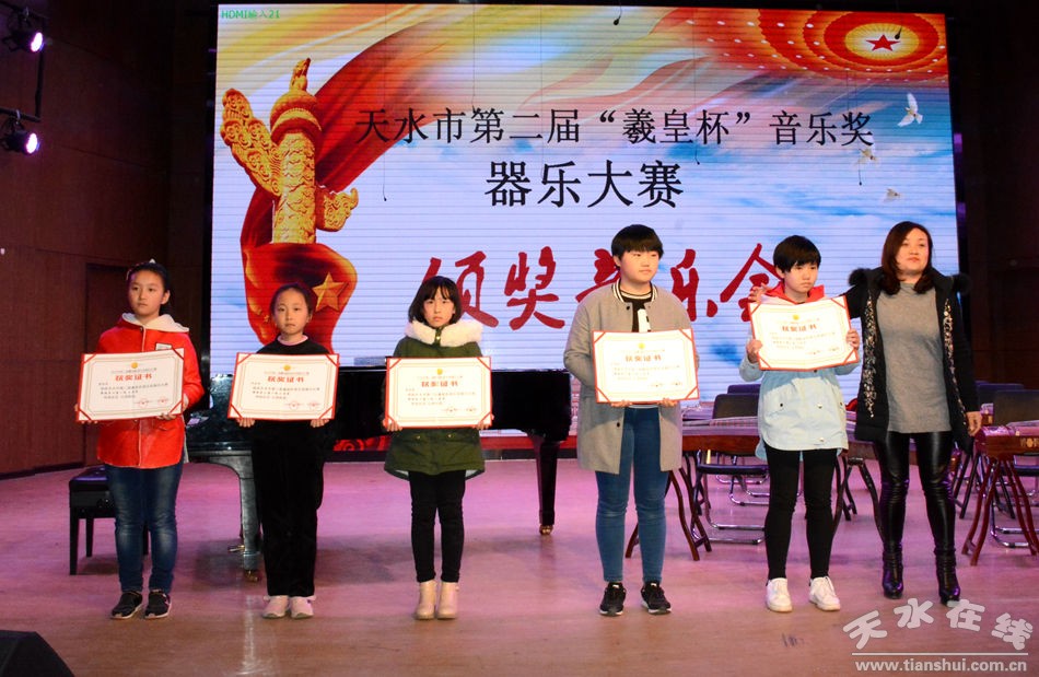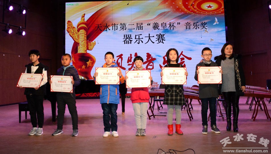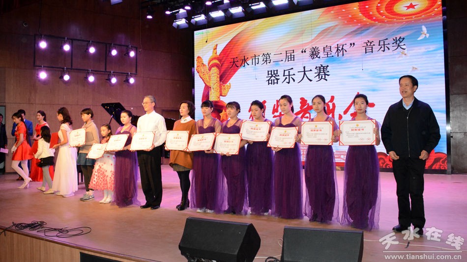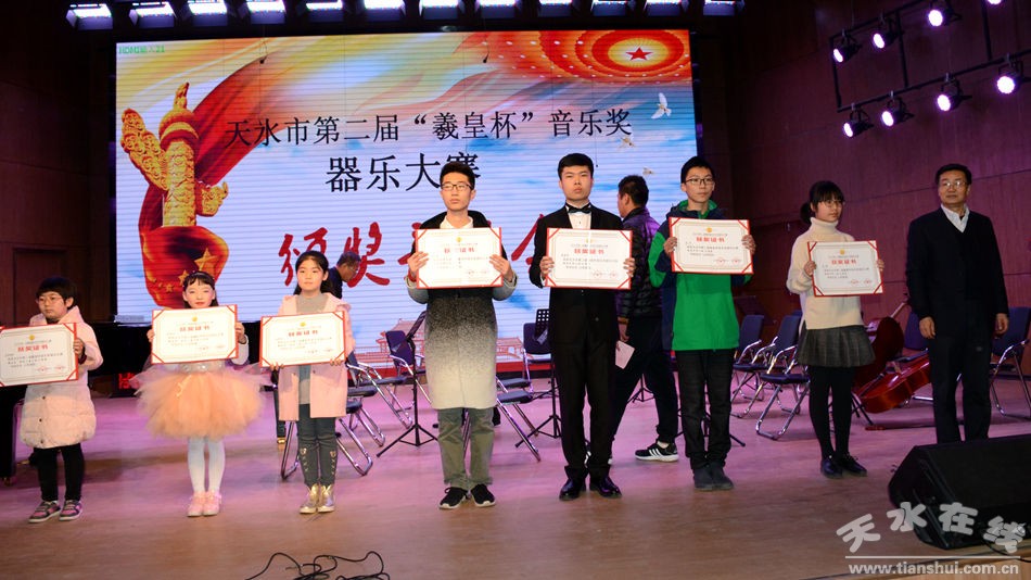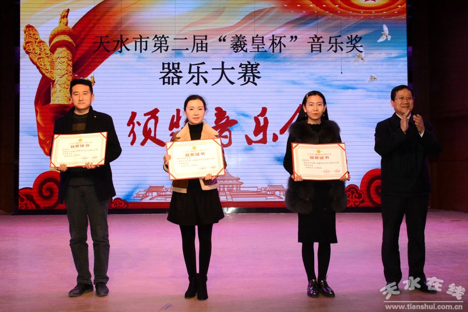 11月18日下午,天水第二届“羲皇杯”音乐奖器乐大赛颁奖音乐会在天水师院音乐厅举行。市人大常委会副主任蒲朝晖,市政协副主席苏定武、市文联主席王进文出席颁奖音乐会并为获奖选手颁奖。