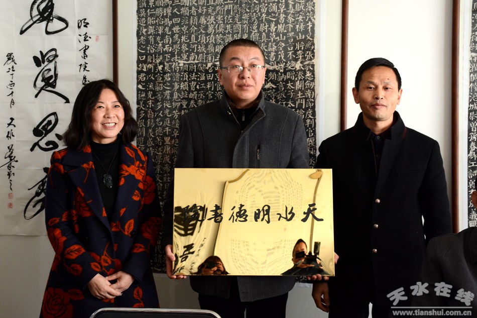 天水市政协副主席王振宇,天水市文联主席王进文,天水市社会组织管理局局长刘万洲,天水市文化和旅游局副局长李小敏,天水市文化馆馆长李靖,天水师范学院教授聂大受,天水师范学院教授、师院图书馆馆长吴卫东,天水市委宣传部《天水宣传》杂志主编李笼,秦州区文化局局长秦毅敏,秦州区文联主席顾明轩等领导及著名书画师、古琴师、原甘肃省画院画家周兆颐,天水市美协副主席汪洋,天水西部书画院常务副院长雷振扬,天水市诗词学会常务副会长李蕴珠,天水市诗词学会副 会长艾叶,华夏文明导报《天水周刊》总编王忠玉等嘉宾见证揭牌仪式。