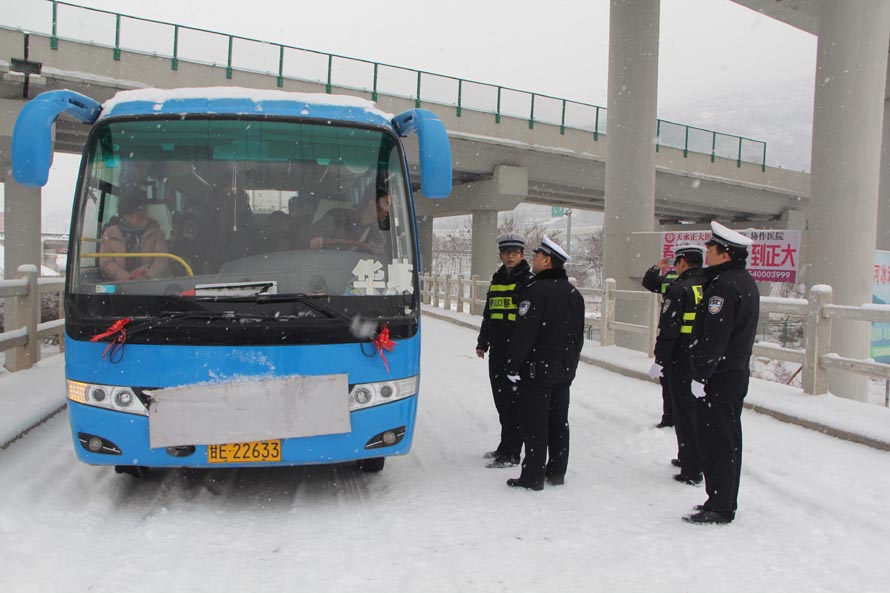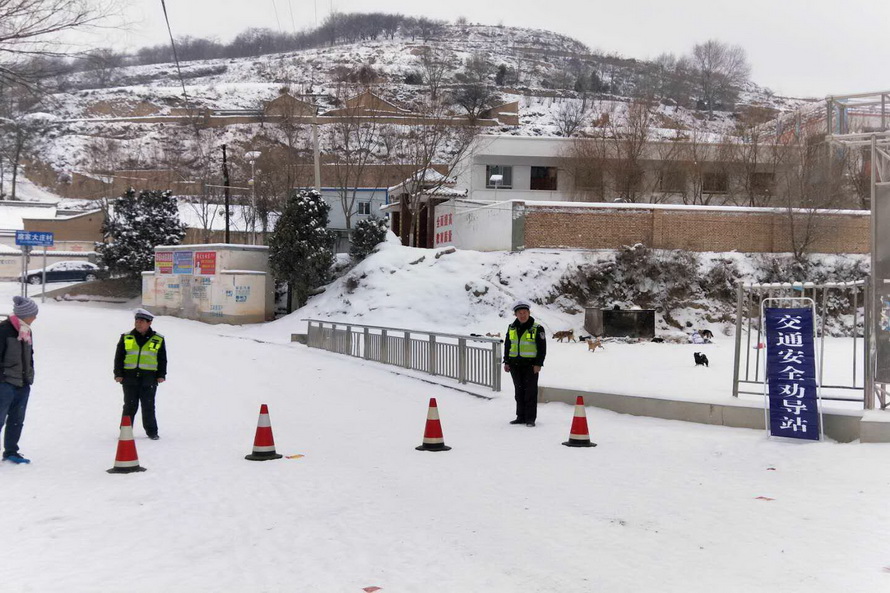 张家川县公安局交警大队在城区各主干道、农村路段增加警力部署,积极疏导交通;对广大驾驶员及路边行人以温馨的提示告知他们雪天安全出行注意事项。
