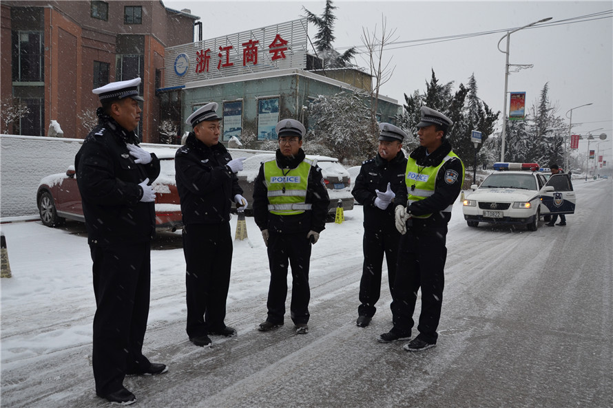麦积公安分局交警大队领导分工包片,全员上路执勤,出动警力220人次奔赴全区各乡镇、重点路段、路口,冒着大雪指挥疏导交通。