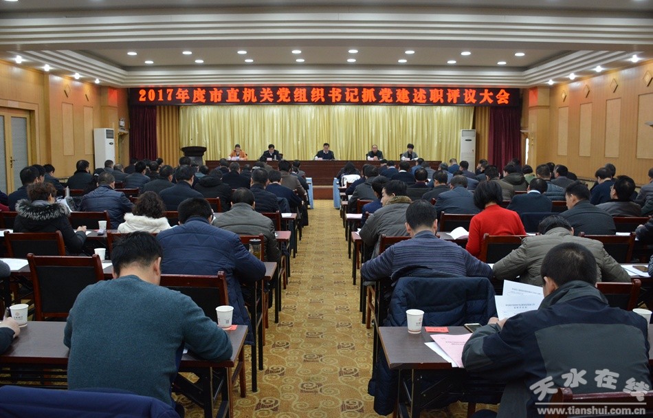 1月11日,天水市直机关工委召开2017年度市直机关党组织书记抓基层党建工作述职评议大会。市直机关工委所属100家党组织书记及部分党员代表参加,市委组织部部务委员曹兴强同志出席会议并做了综合点评。