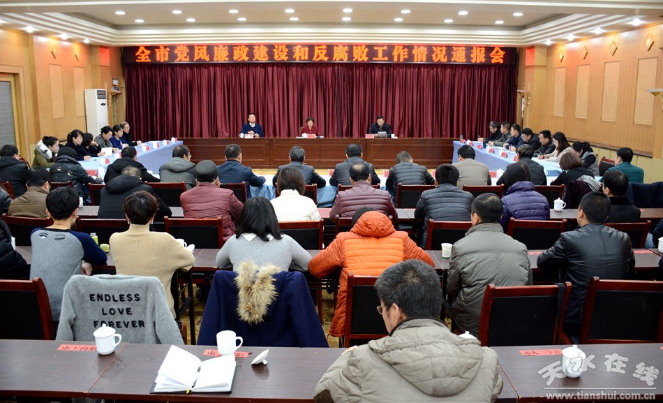 1月17日,天水市召开党风廉政建设和反腐败工作情况通报会,就全市党风廉政建设和反腐败工作情况向我市各民主党派、工商联和无党派人士通报。市委常委、统战部部长温利平主持会议并讲话。市纪委副书记、监察委副主任熊卫三通报我市2017年党风廉政建设和反腐败工作。市委统战部副部长邢赟,市级各民主党派负责人和部分常委、委员,市工商联负责同志和部分常委、执委,市知联会负责人参加会议。