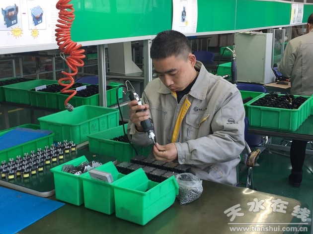 1月21日下午,天水二一三电器有限公司的工人康亮,正聚精会神地坐在装备分厂一楼的GS24—25D生产线上,熟练地摆着开关线圈。