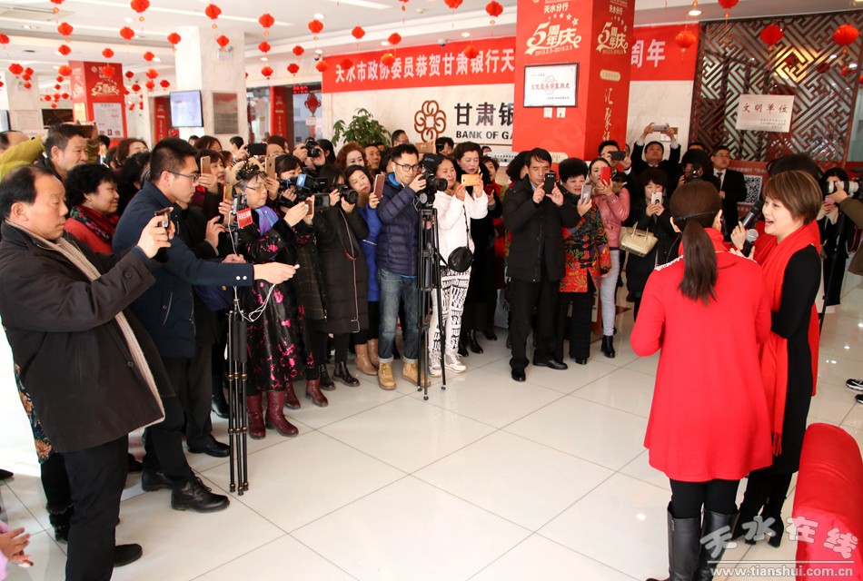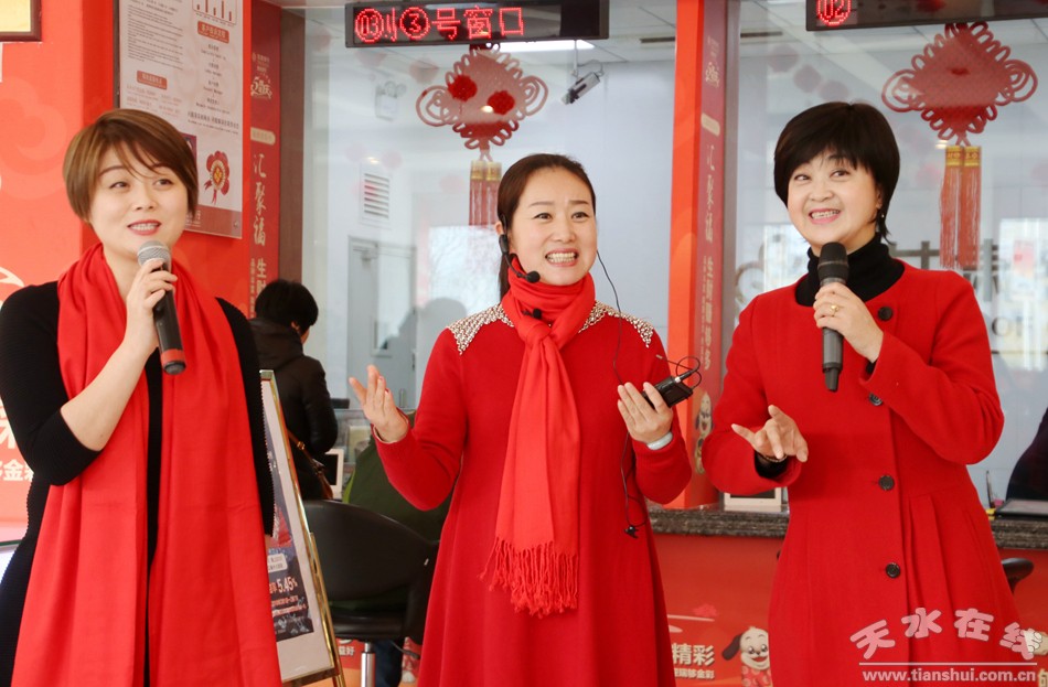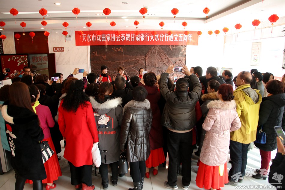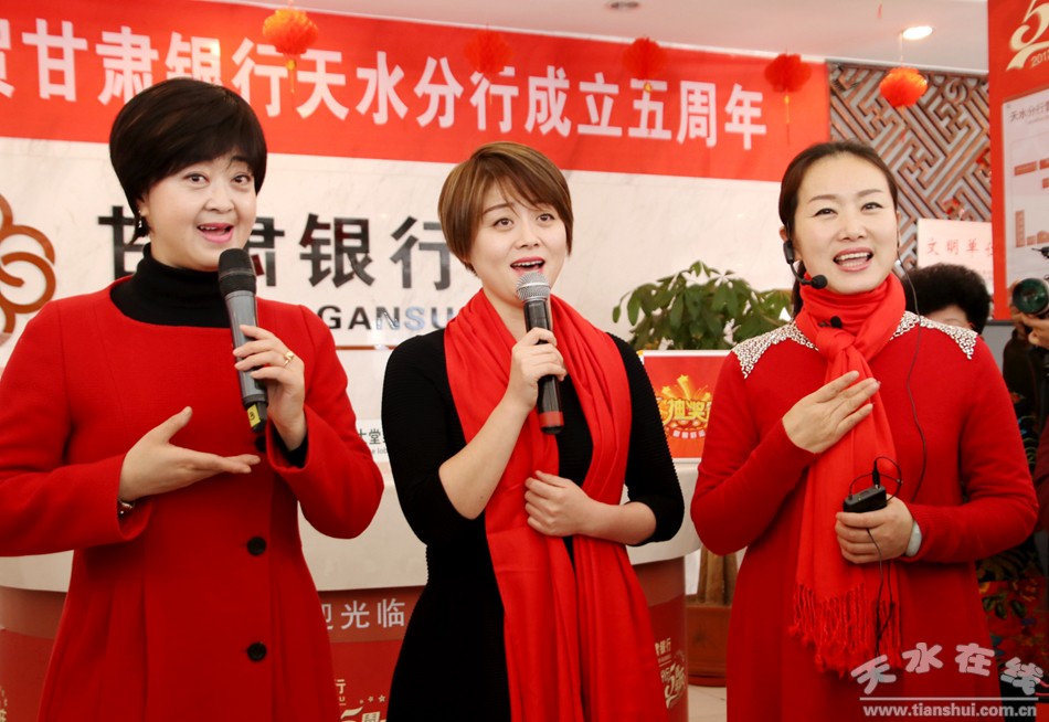 天水在线报道 2月3日,距甘肃银行天水分行成立五周年华诞还有2天。当日,中国戏剧梅花奖获得者、中国秦腔四小名旦、天水市西秦腔研究院副院长袁丫丫,中国戏剧梅花奖获得者、甘肃省陇剧院演员团团长、兰州文理学院教授窦凤霞和中国秦腔四小名旦、中国戏剧红梅金奖得主、陕西艺术职业学院剧目教研室主任梁少琴共同走进甘肃银行天水分行营业大厅,现场为天水市政协委员、客户、甘肃银行天水分行职工和戏迷演唱秦腔选段,共贺甘肃银行天水分行成立五周年。