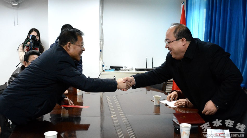 2月1日,天水市委常委、副市长宫辉来到秦州区林业局森防站、市畜牧技术推广站,看望慰问正高级林业工程师、“享受国务院政府特殊津贴”专家、甘肃省领军人才武星煜,市领军人才何振刚,并向他们送去新春的祝福和慰问金。