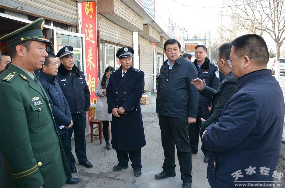 2月12日,天水市委常委、常务副市长赵卫东带领市公安局、市安监局、市消防支队、市公安治安支队等有关部门负责人,对秦州、麦积两区春节前消防安全、烟花爆竹、危爆品管理、社会治安管控工作进行了督查。