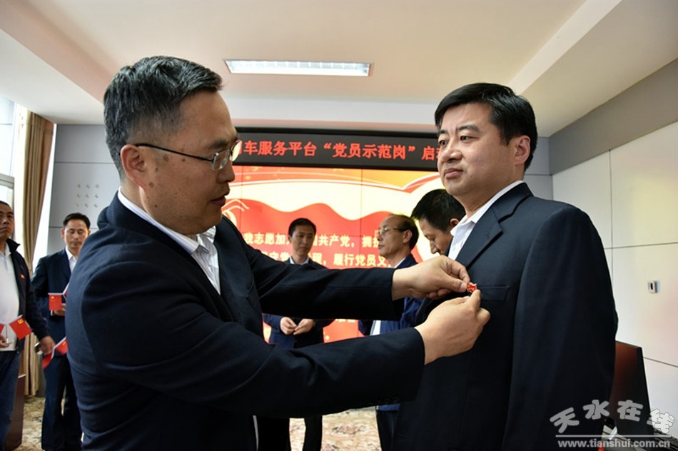 随后局领导为每名党员驾驶员授予了“党员示范岗”标识牌,佩戴了党徽,标识牌上有驾驶员照片、姓名等个人信息。将标识牌粘贴在公务车上,并在车内装置了一面微型党旗,做到“党员走到哪里,旗帜就飘扬在哪里”。两名党员代表分别作了表态发言。