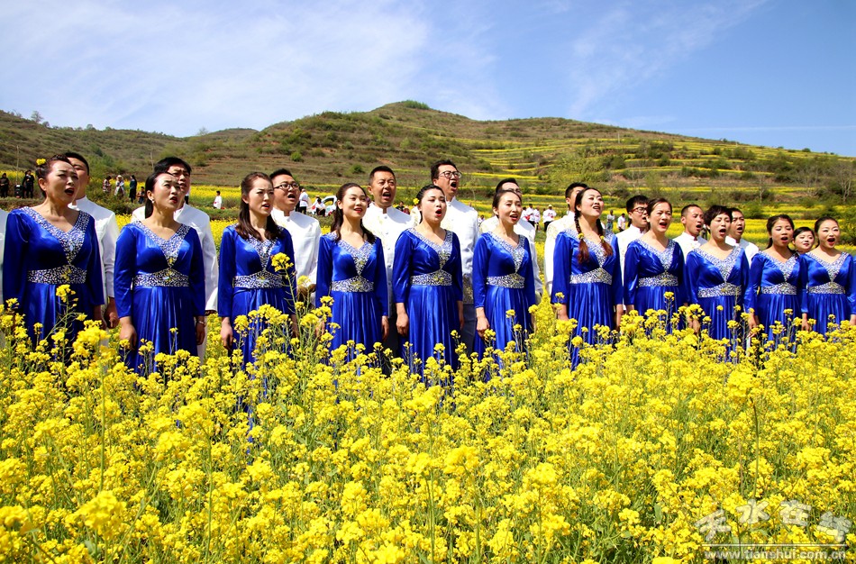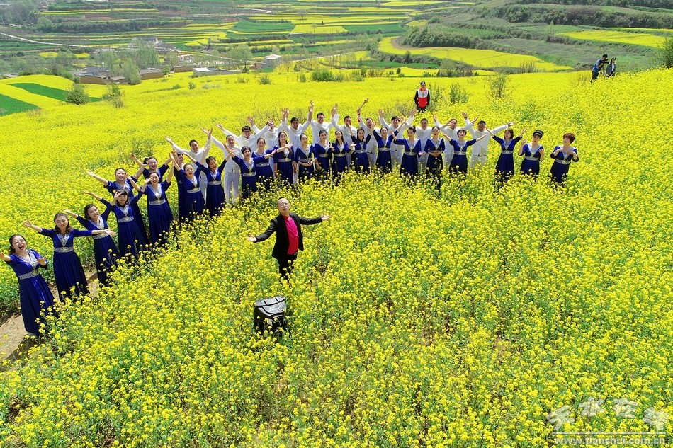 (合唱:《在希望的田野上》 天水在线2018年5月2日摄于龙台镇大庄村油菜花田)