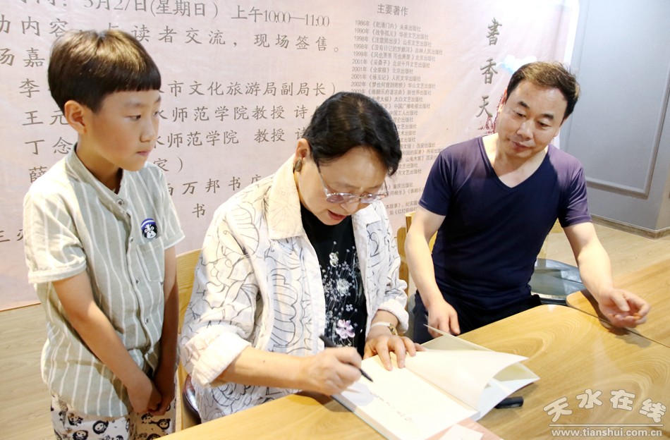 叶广芩老师此次应邀来到天水参加第三届“中国-天水李杜诗歌节”活动,在诗歌节开幕前一天,叶老师来到天一书店,与天水读者面对面交流,分享了读书与写作的情怀,同时进行现场签售活动。